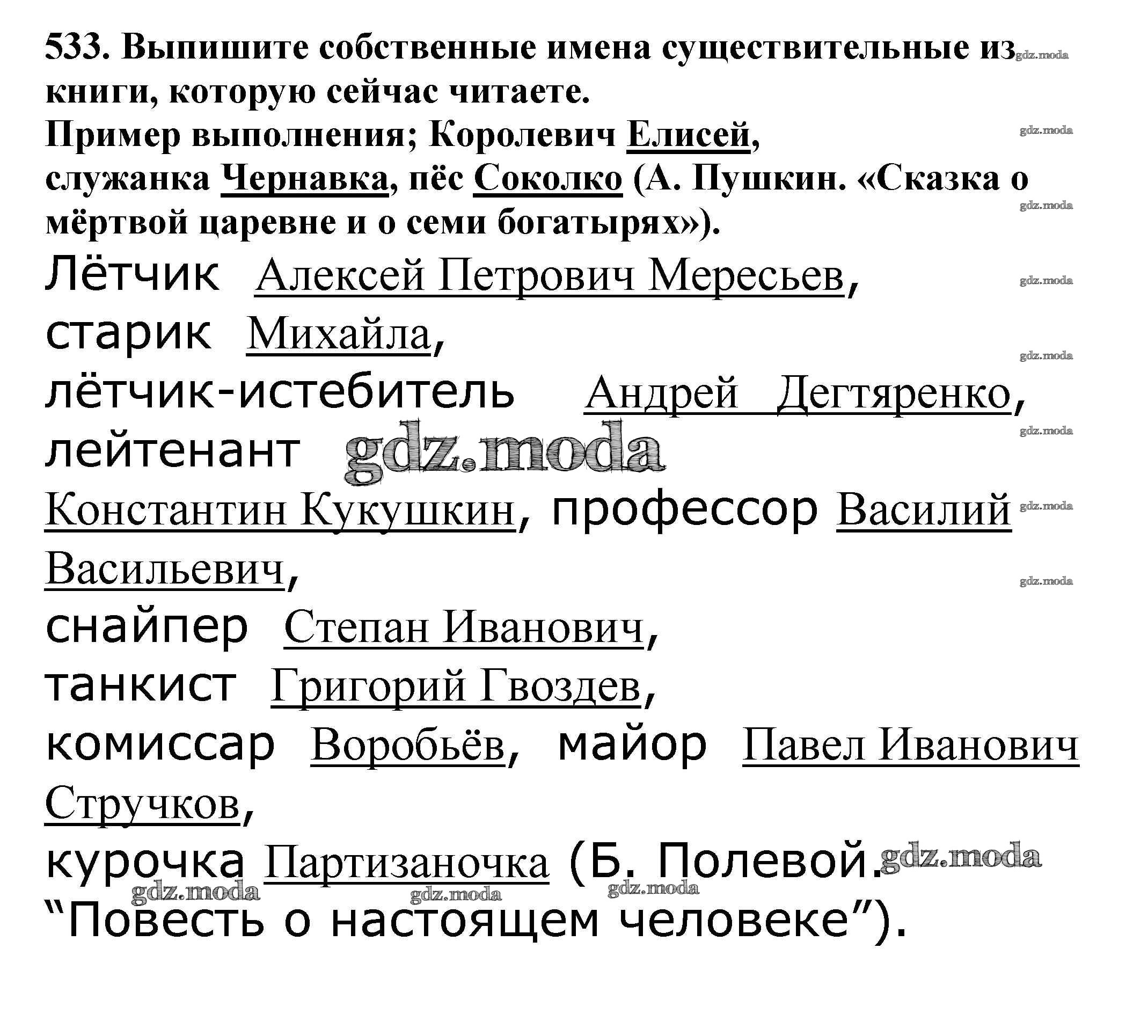 ОТВЕТ на задание № 533 Учебник по Русскому языку 5 класс Баранов