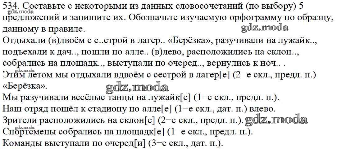 ОТВЕТ на задание № 534 Учебник по Русскому языку 5 класс Баранов