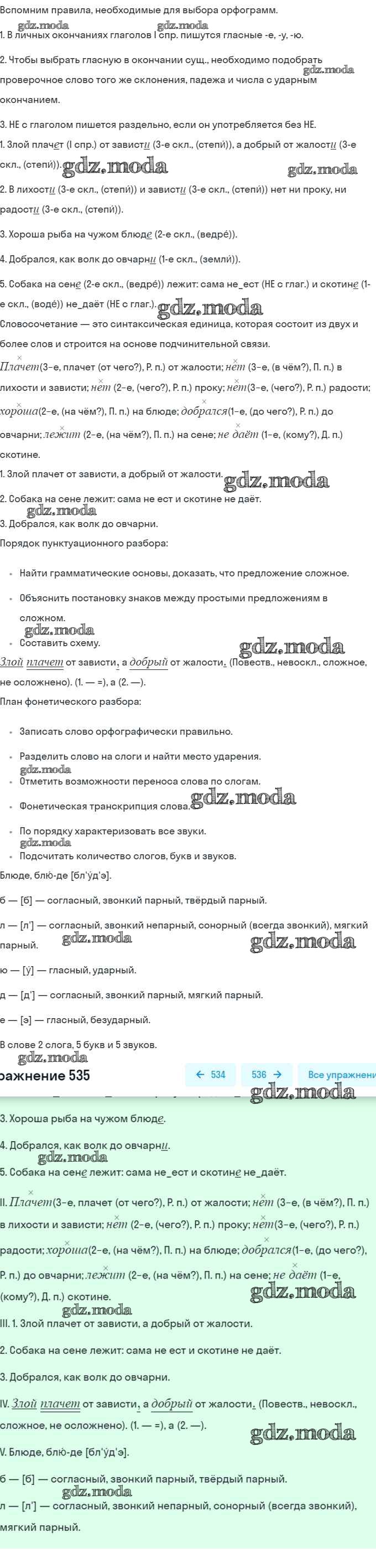 ГДЗ решение к заданию № 535 Русский язык 5 класс Ладыженская Т.А. Просвещение, Просвещение 2016, 2019 Часть 1, Часть 2 ФГОС бесплатно на гдз.мода!