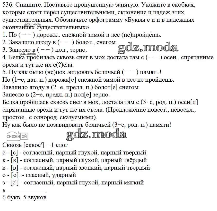 ОТВЕТ на задание № 536 Учебник по Русскому языку 5 класс Баранов