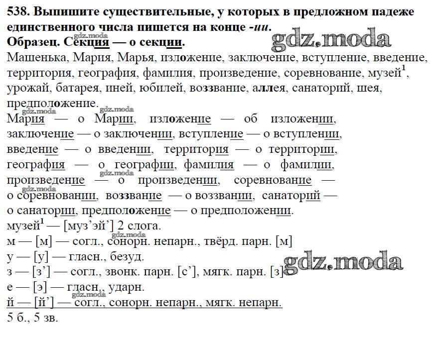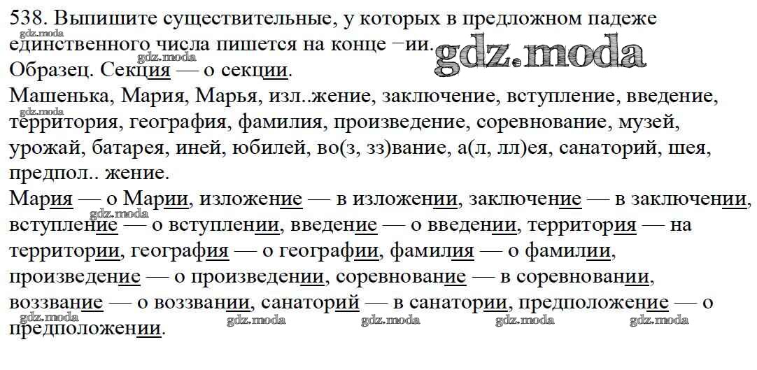 ОТВЕТ на задание № 538 Учебник по Русскому языку 5 класс Баранов