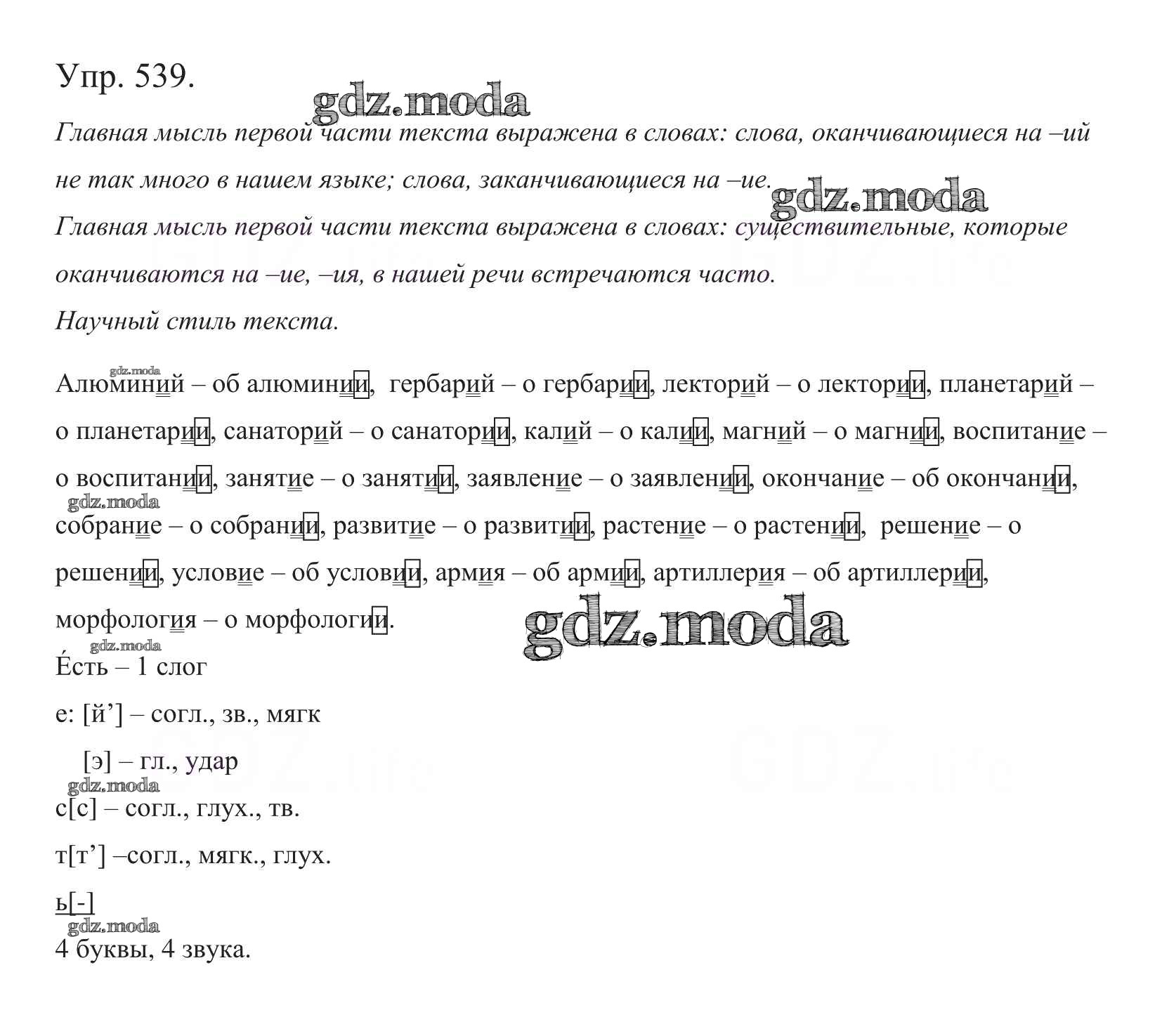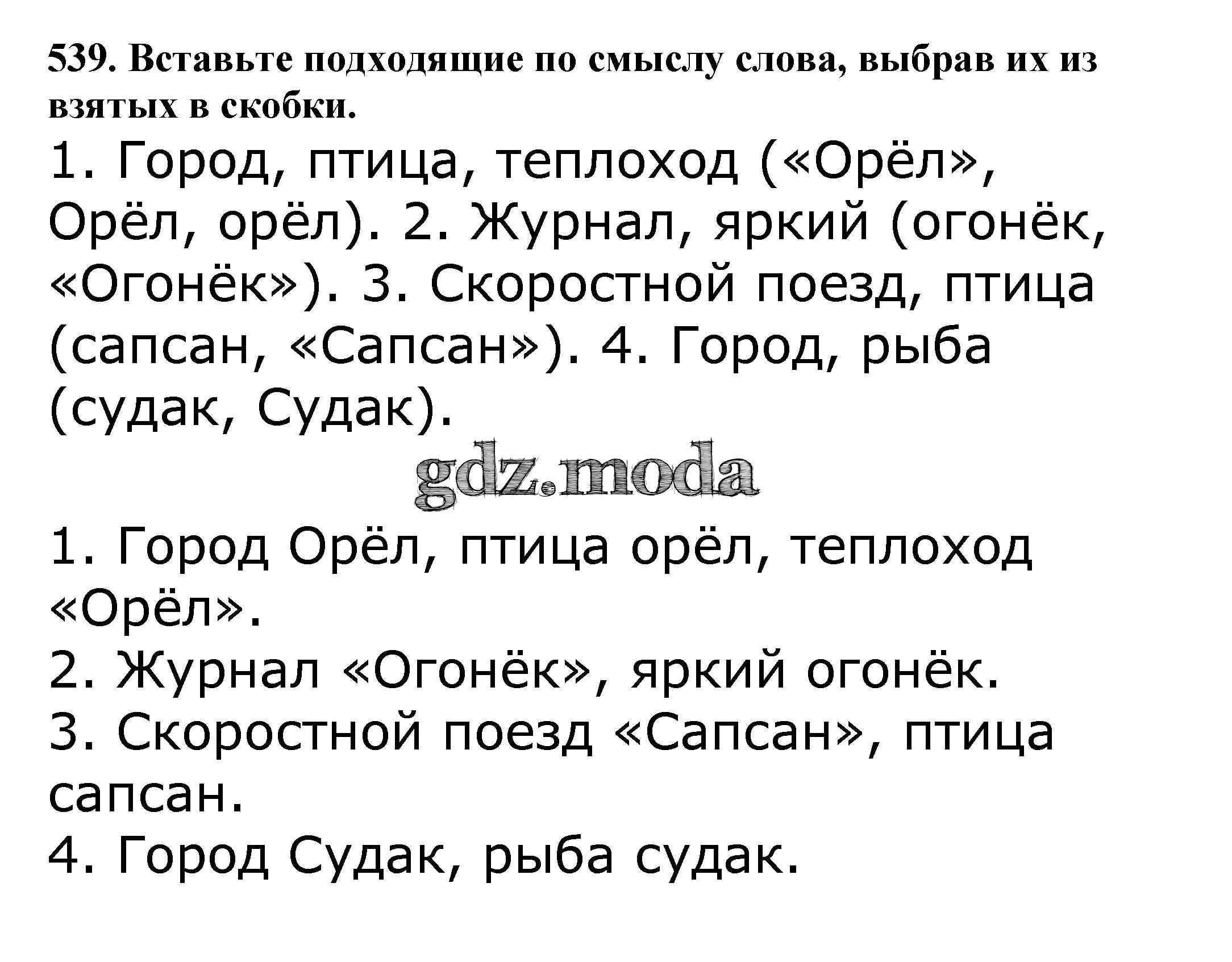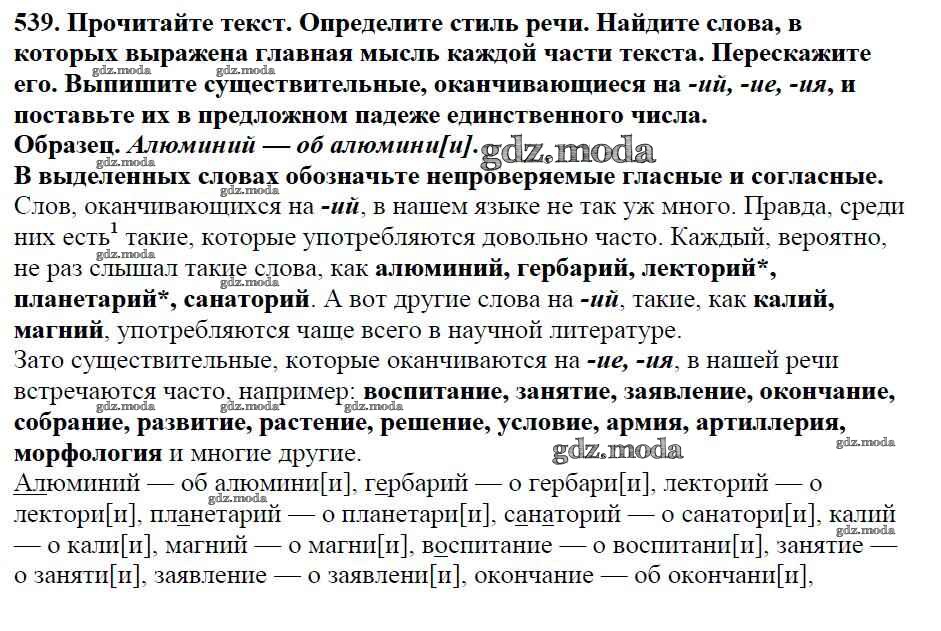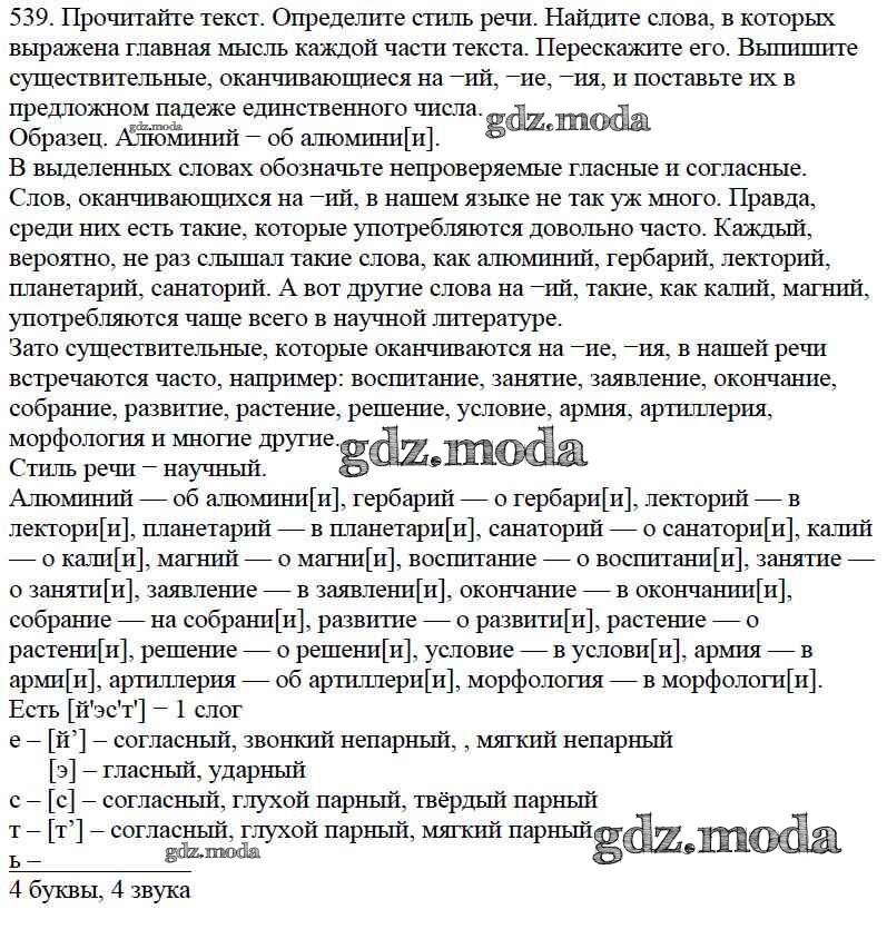 ОТВЕТ на задание № 539 Учебник по Русскому языку 5 класс Баранов