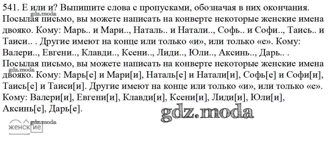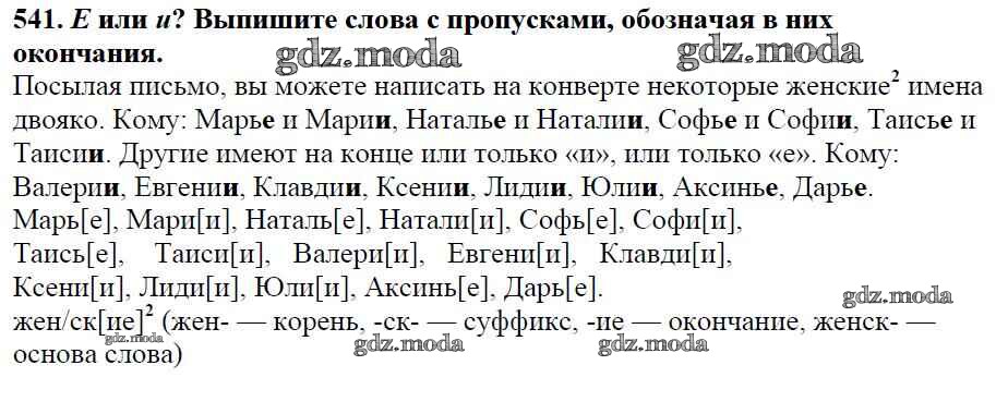 ОТВЕТ на задание № 541 Учебник по Русскому языку 5 класс Баранов