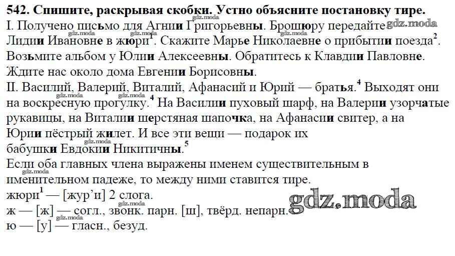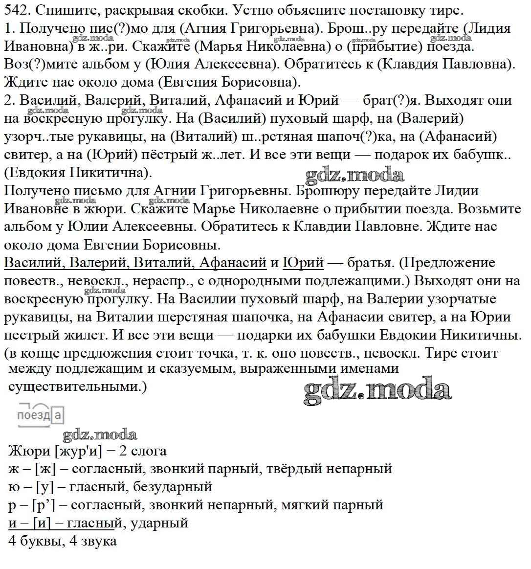 ОТВЕТ на задание № 542 Учебник по Русскому языку 5 класс Баранов