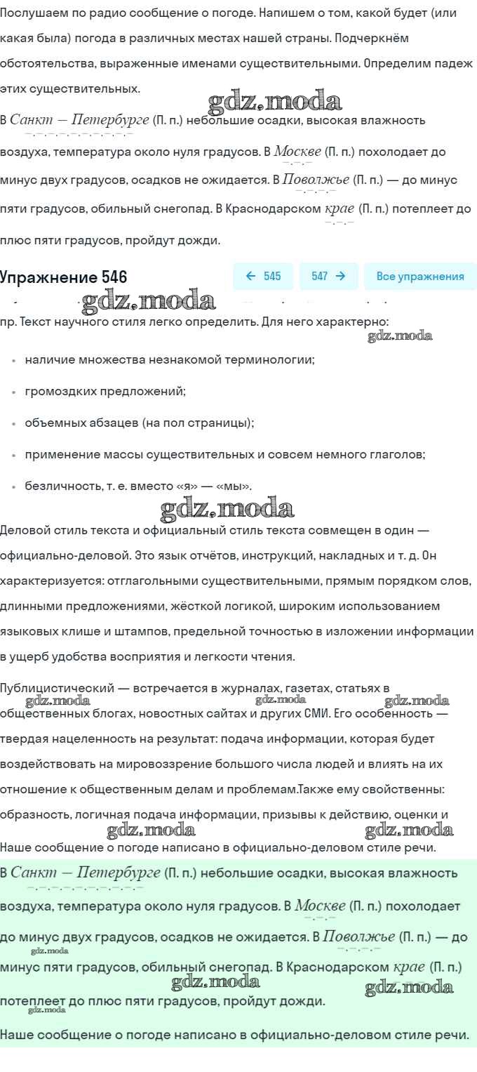 ГДЗ решение к заданию № 546 Русский язык 5 класс Ладыженская Т.А. Просвещение, Просвещение 2016, 2019 Часть 1, Часть 2 ФГОС бесплатно на гдз.мода!