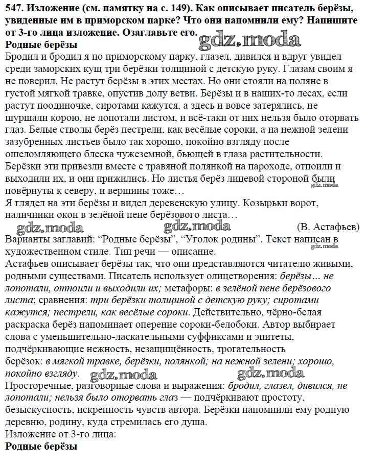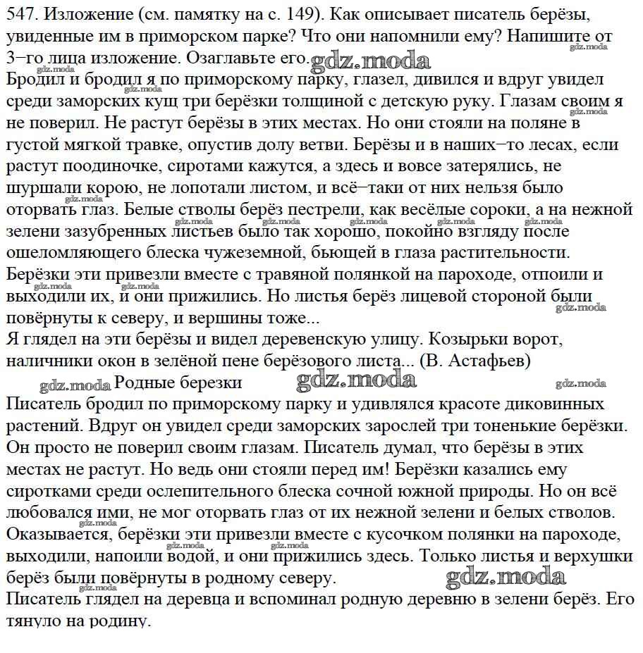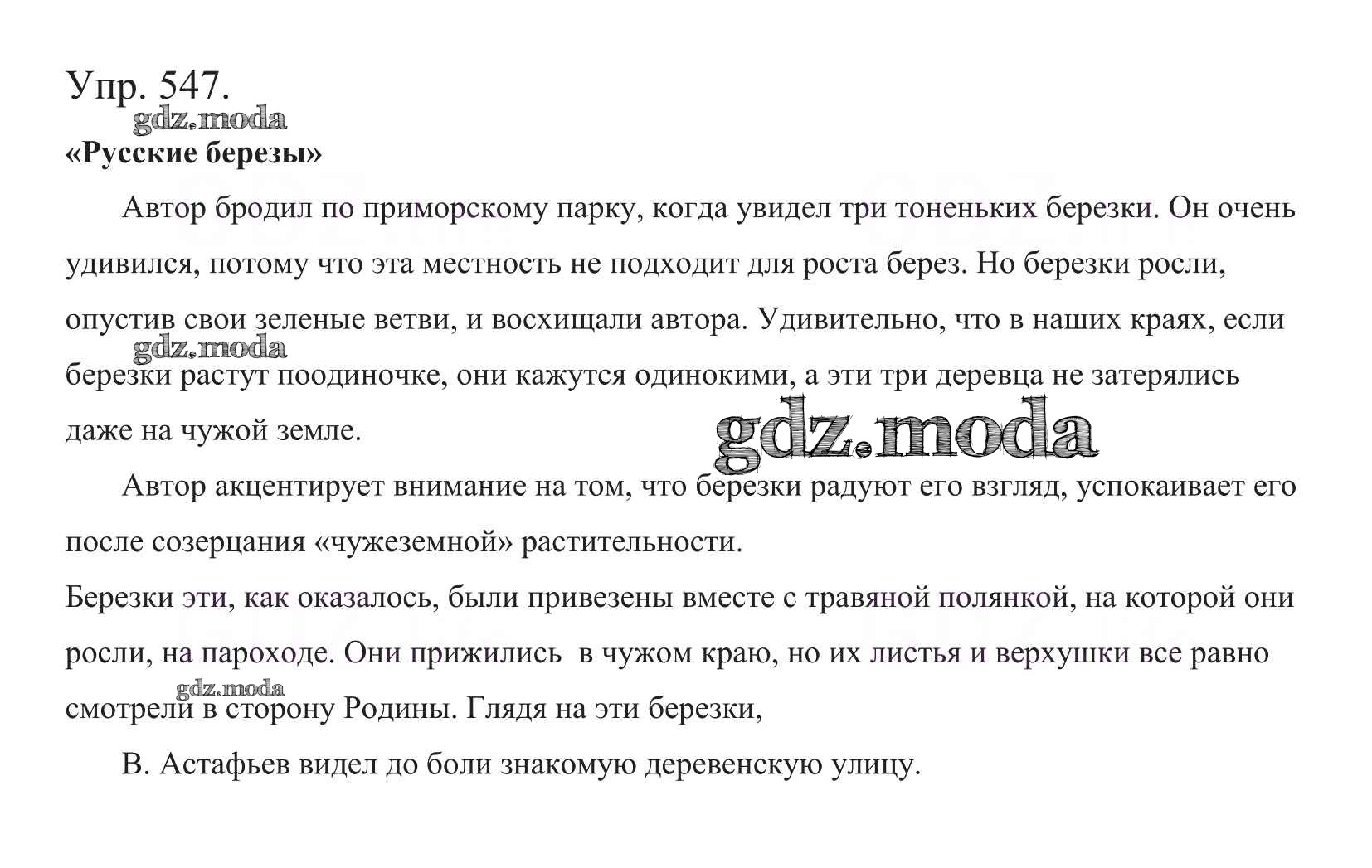 ОТВЕТ на задание № 547 Учебник по Русскому языку 5 класс Баранов