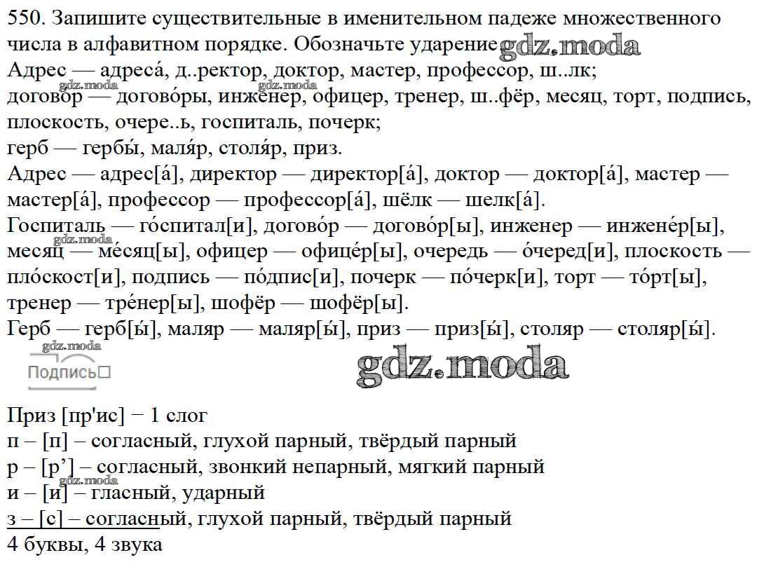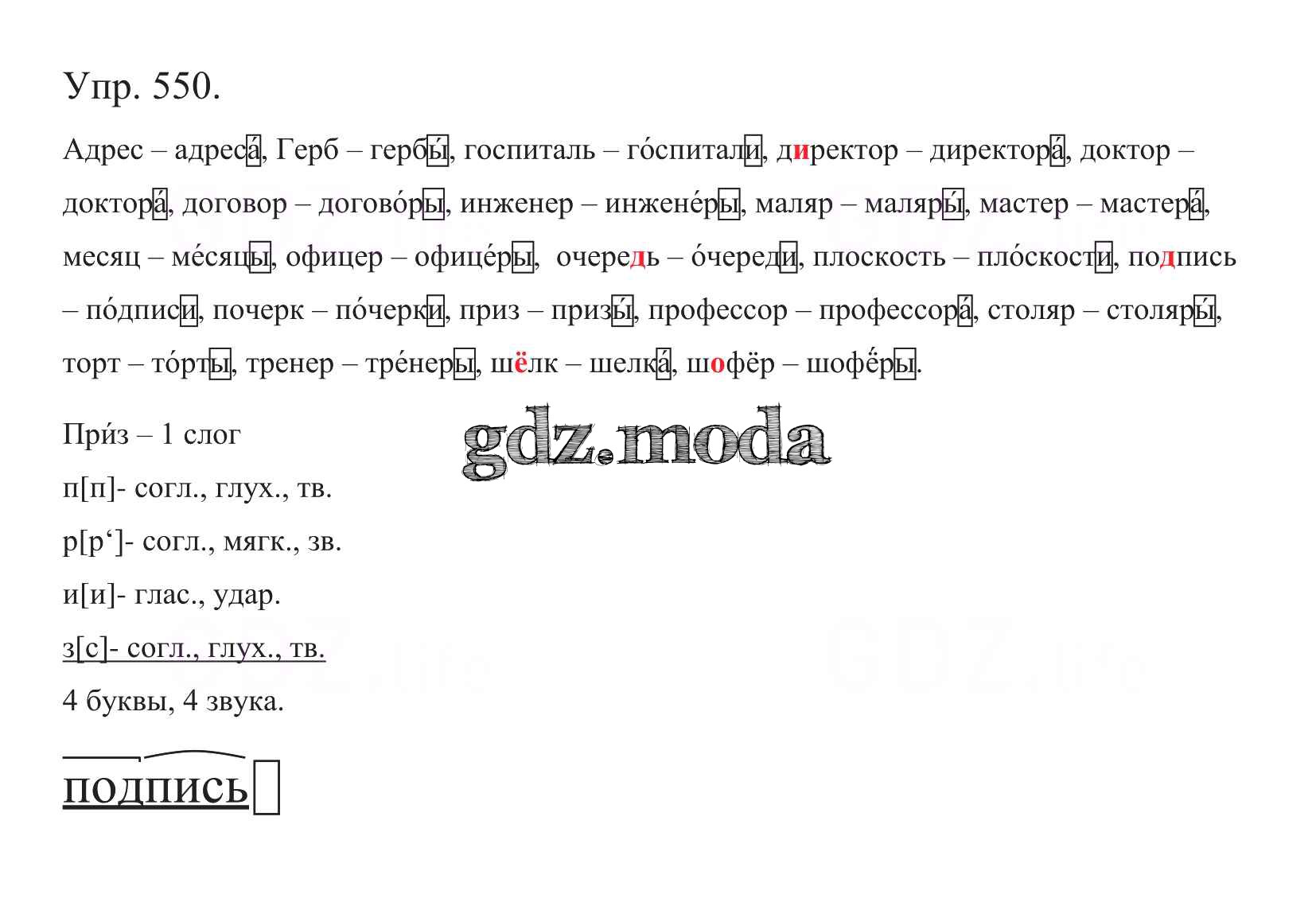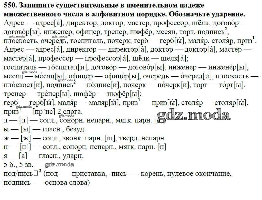 ОТВЕТ на задание № 550 Учебник по Русскому языку 5 класс Баранов