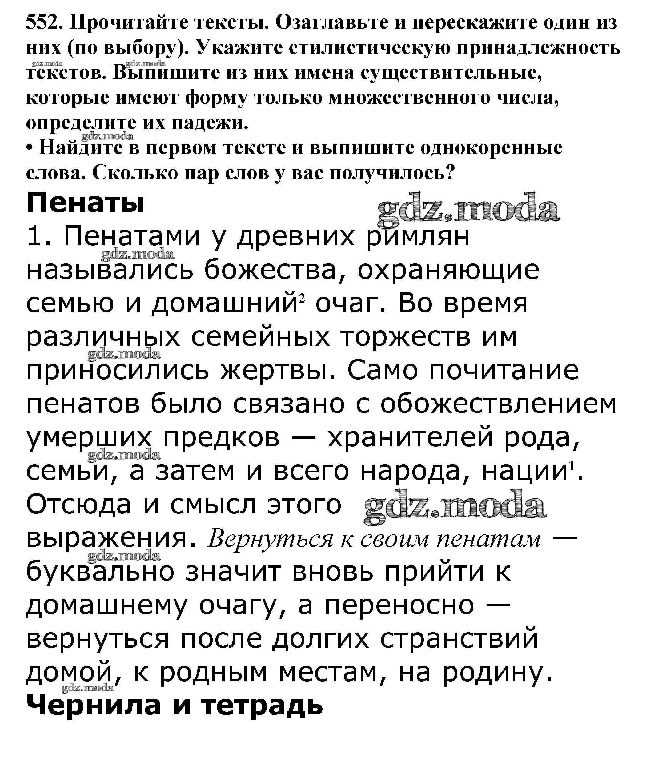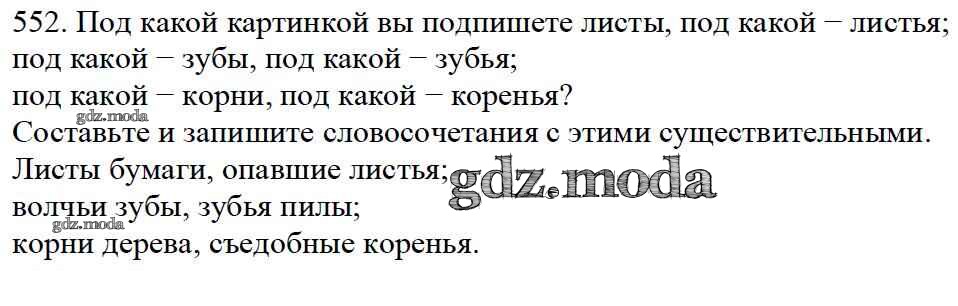 ОТВЕТ на задание № 552 Учебник по Русскому языку 5 класс Баранов