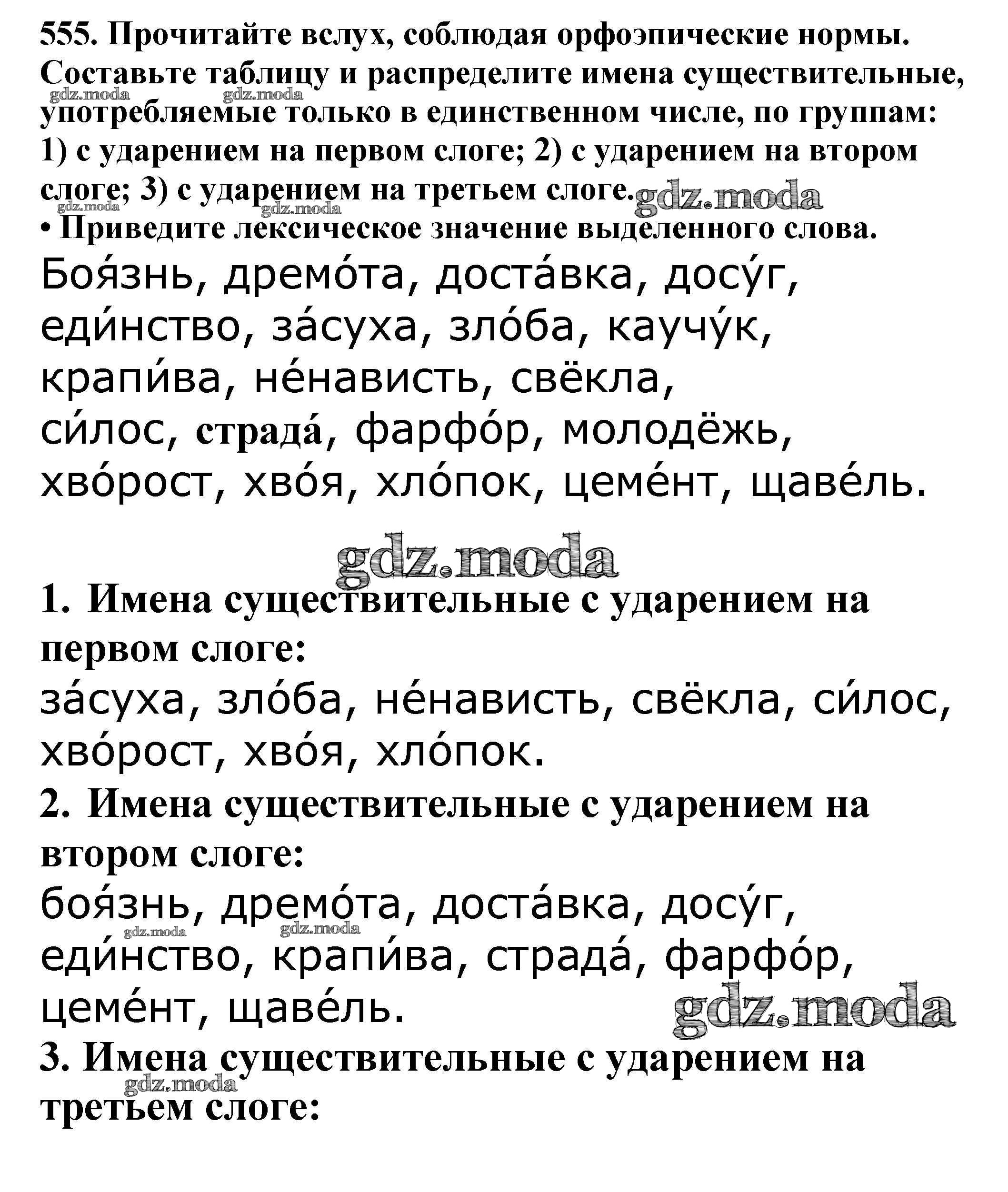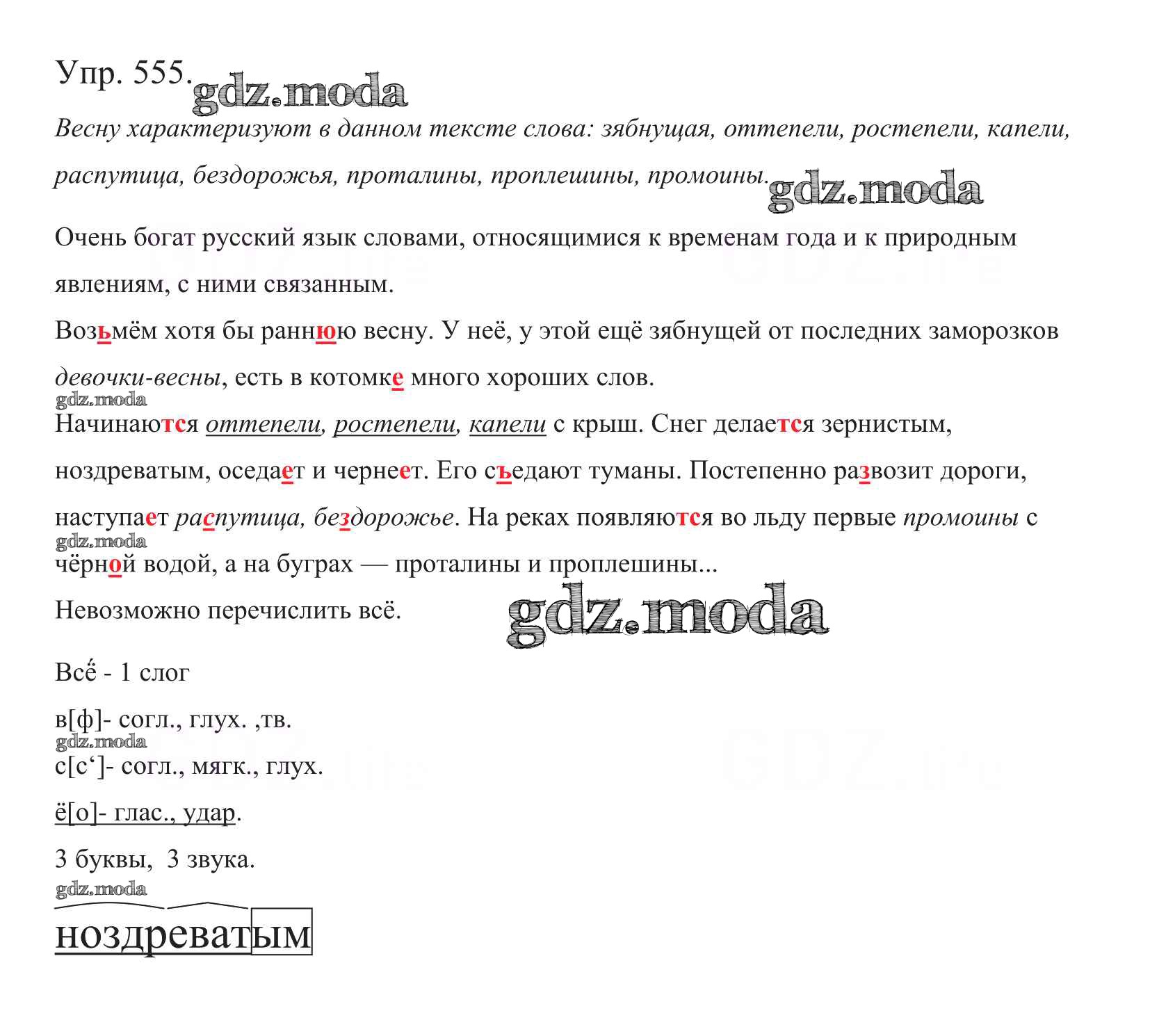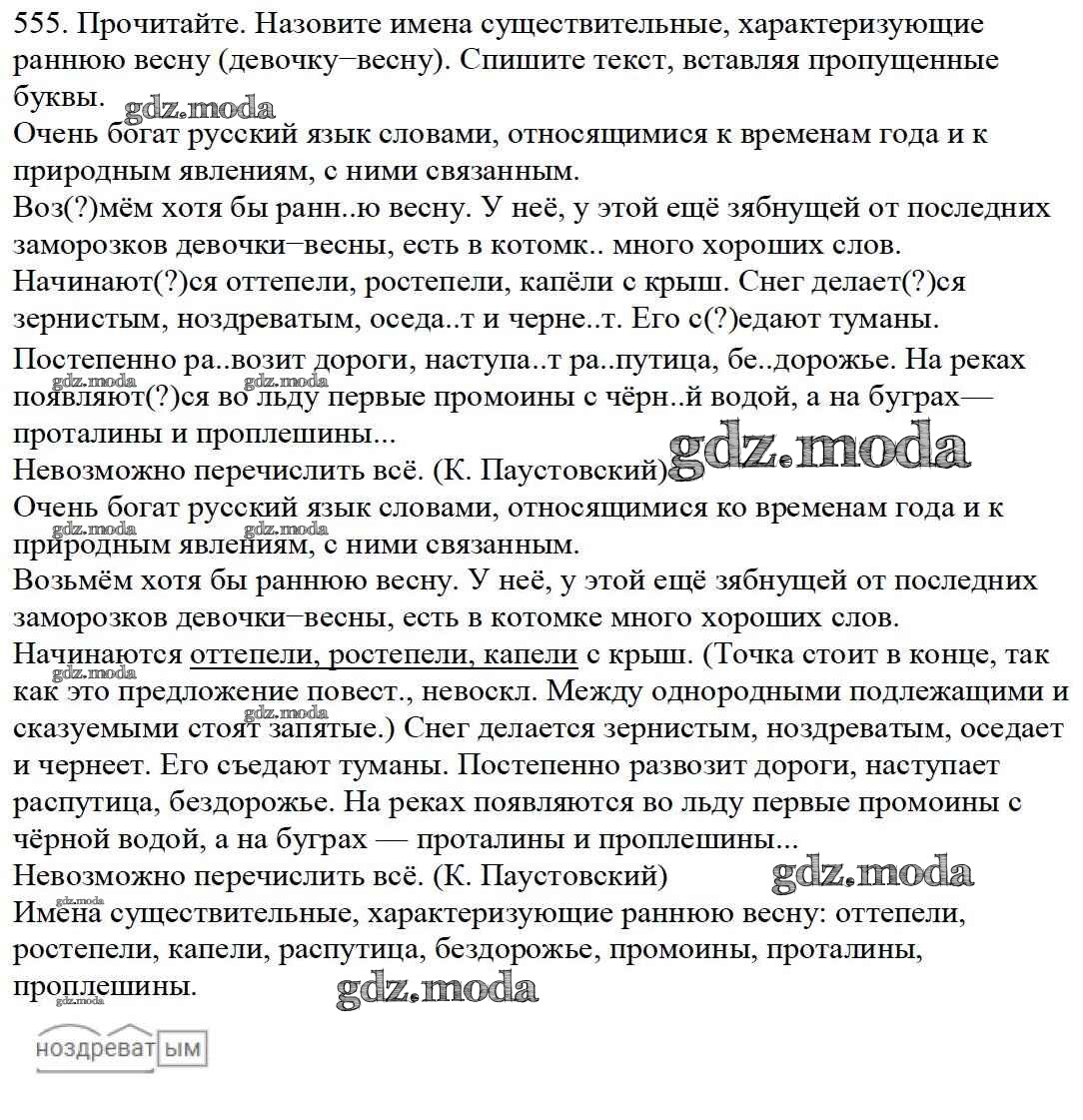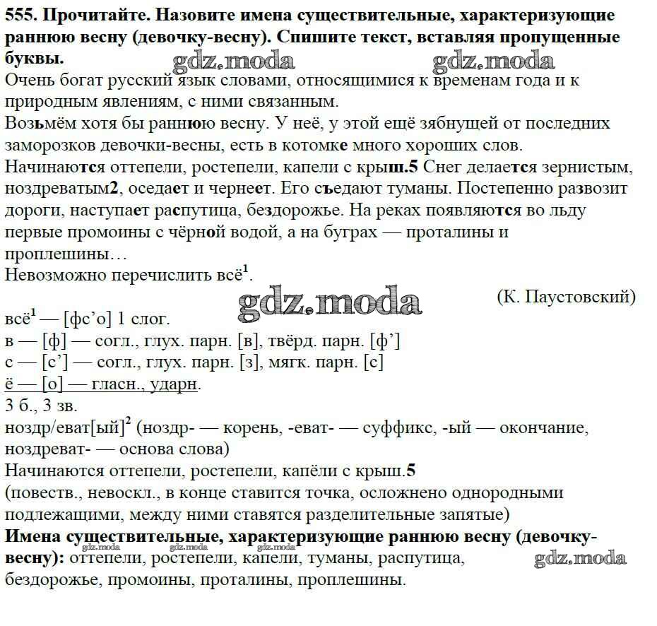 ОТВЕТ на задание № 555 Учебник по Русскому языку 5 класс Баранов