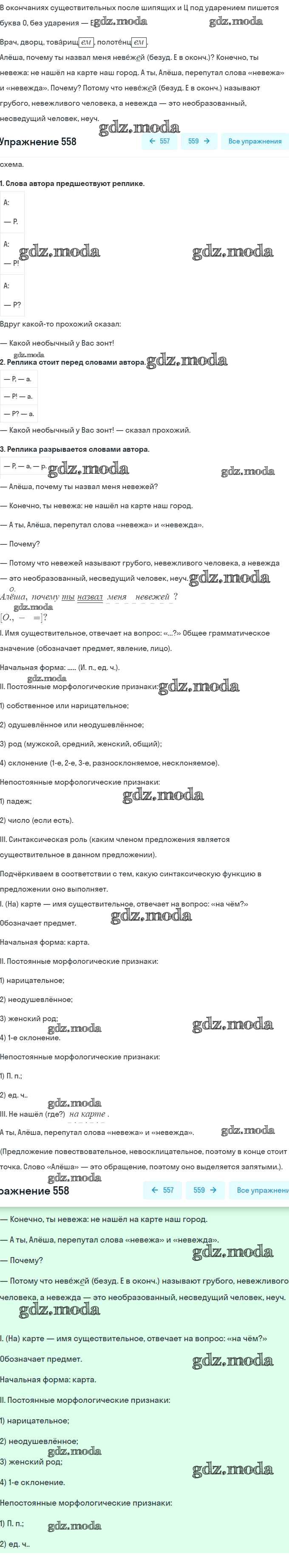 ОТВЕТ на задание № 558 Учебник по Русскому языку 5 класс Баранов