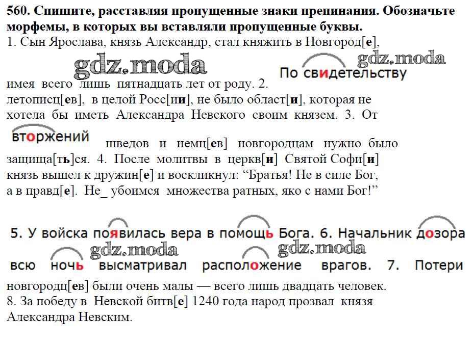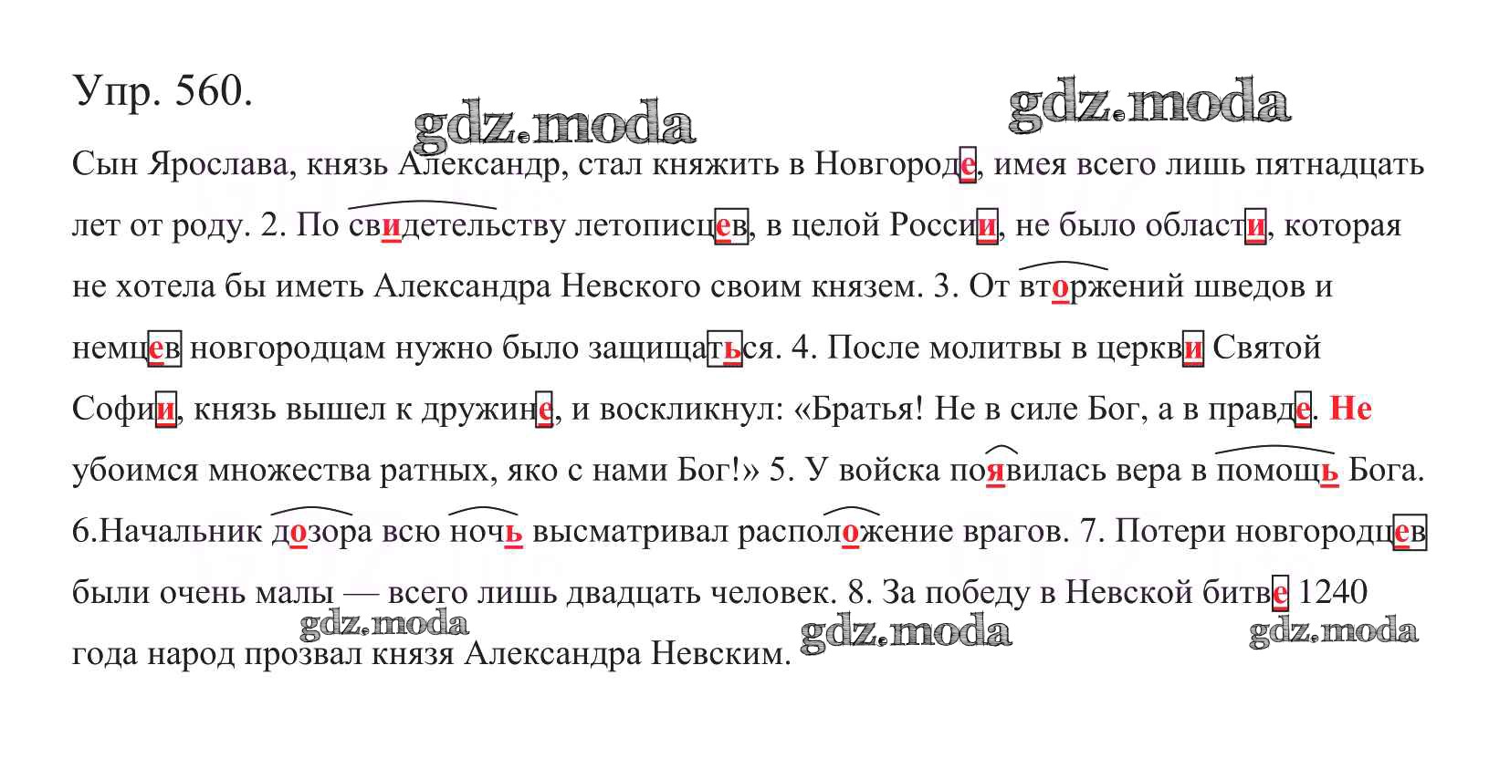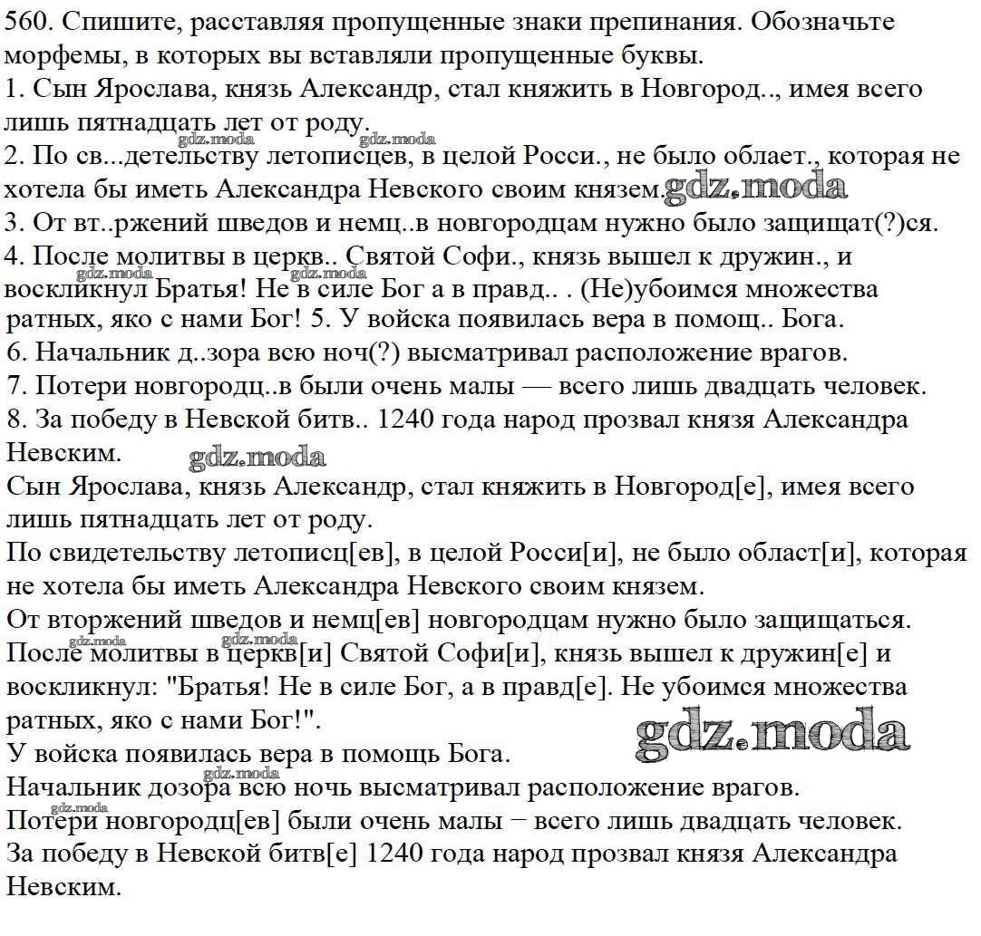 ОТВЕТ на задание № 560 Учебник по Русскому языку 5 класс Баранов
