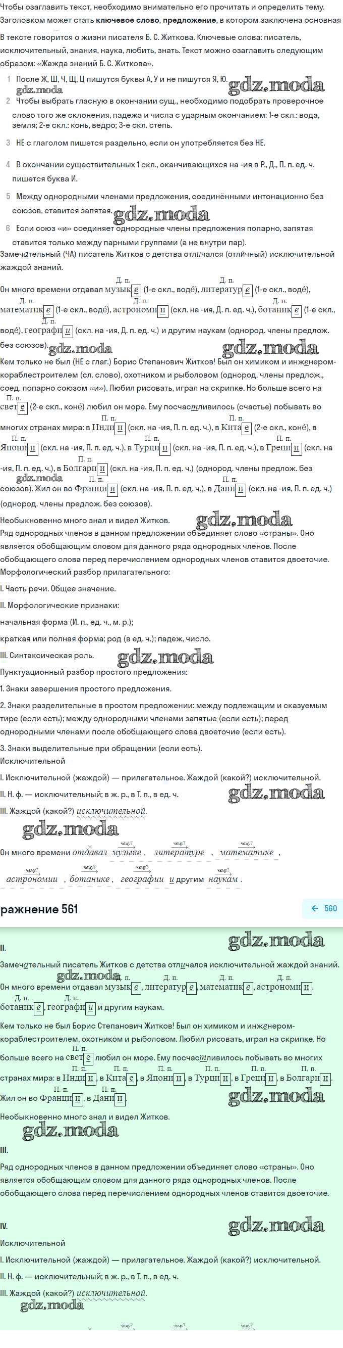 ГДЗ решение к заданию № 561 Русский язык 5 класс Ладыженская Т.А. Просвещение, Просвещение 2016, 2019 Часть 1, Часть 2 ФГОС бесплатно на гдз.мода!