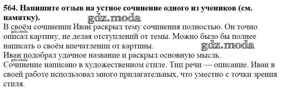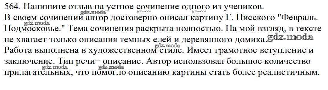 ОТВЕТ на задание № 564 Учебник по Русскому языку 5 класс Баранов