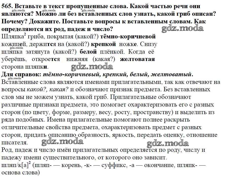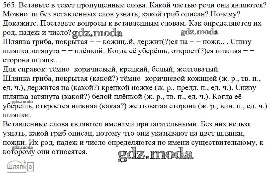 ОТВЕТ на задание № 565 Учебник по Русскому языку 5 класс Баранов