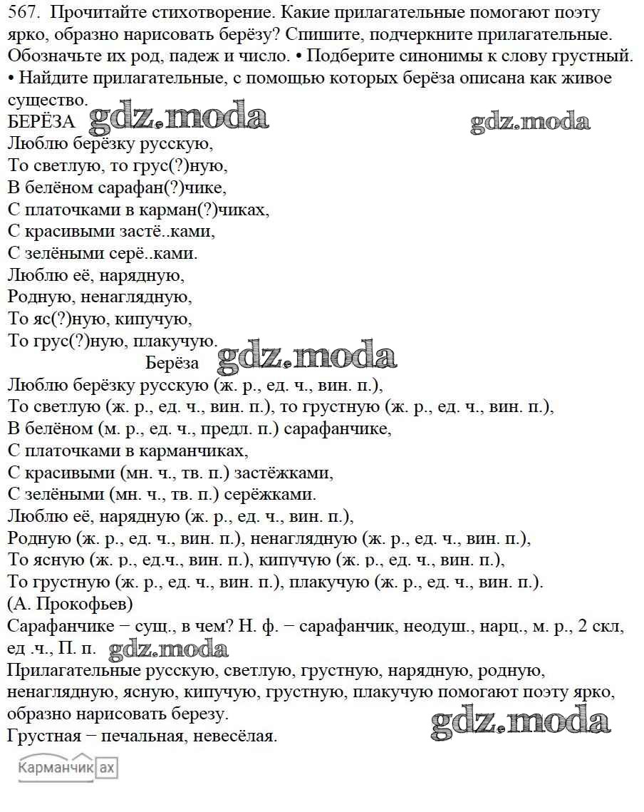 ОТВЕТ на задание № 567 Учебник по Русскому языку 5 класс Баранов