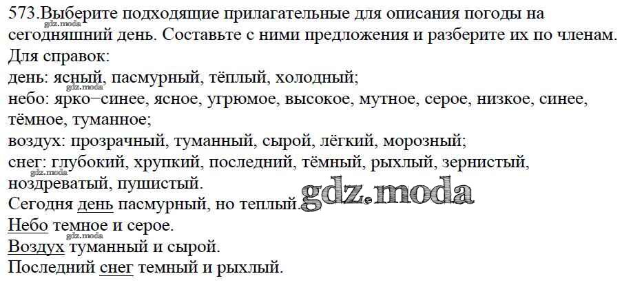 ОТВЕТ на задание № 573 Учебник по Русскому языку 5 класс Баранов