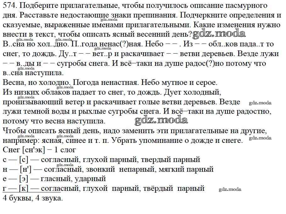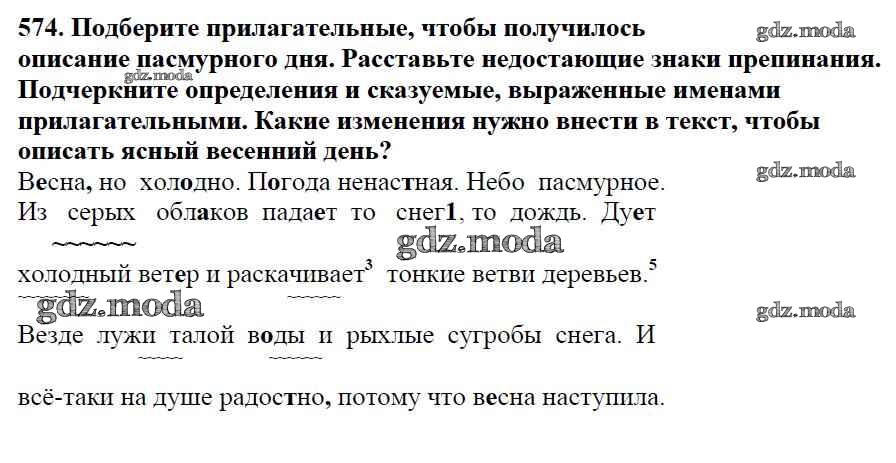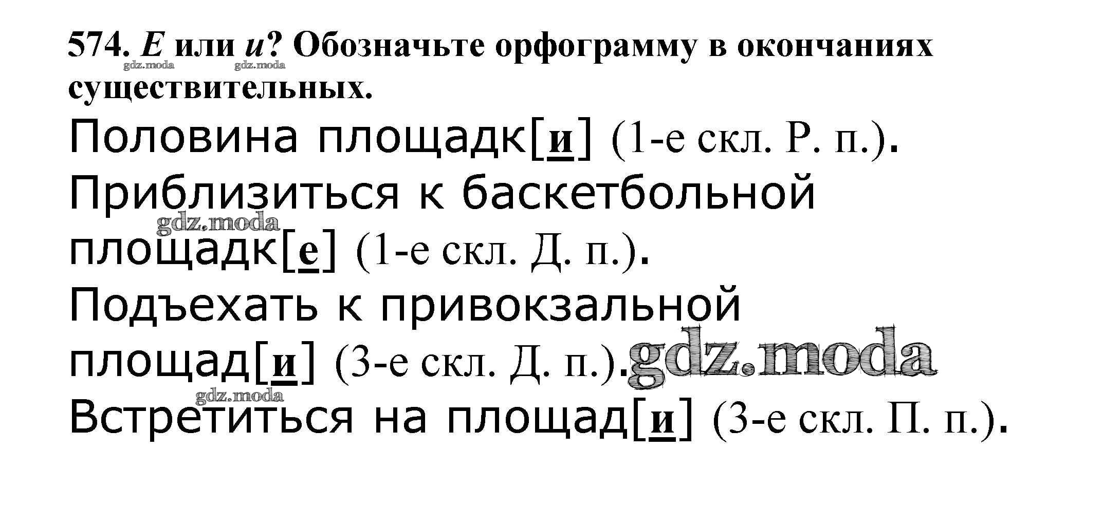 ОТВЕТ на задание № 574 Учебник по Русскому языку 5 класс Баранов