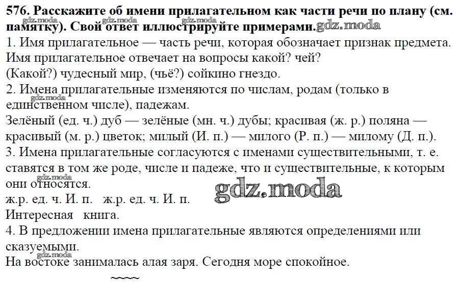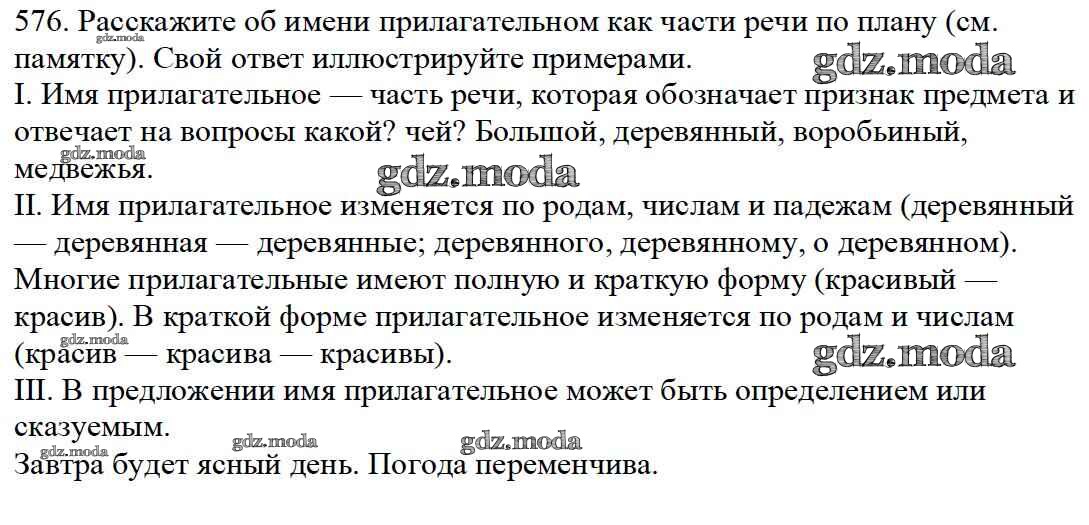 ОТВЕТ на задание № 576 Учебник по Русскому языку 5 класс Баранов