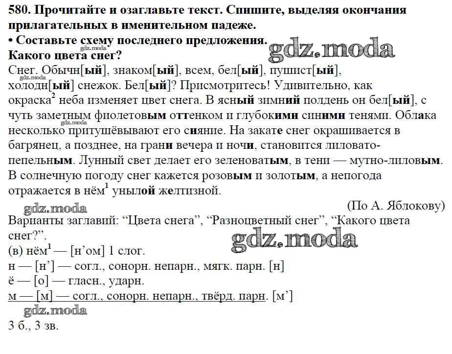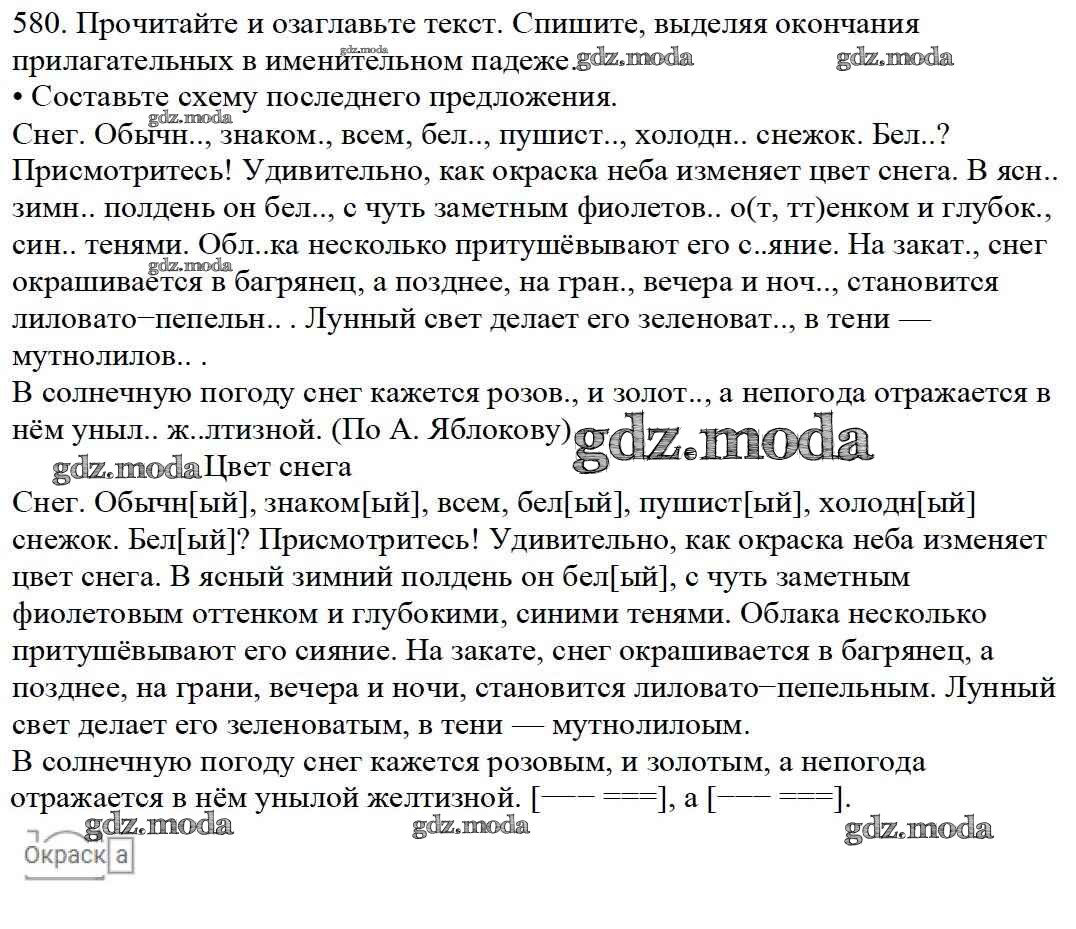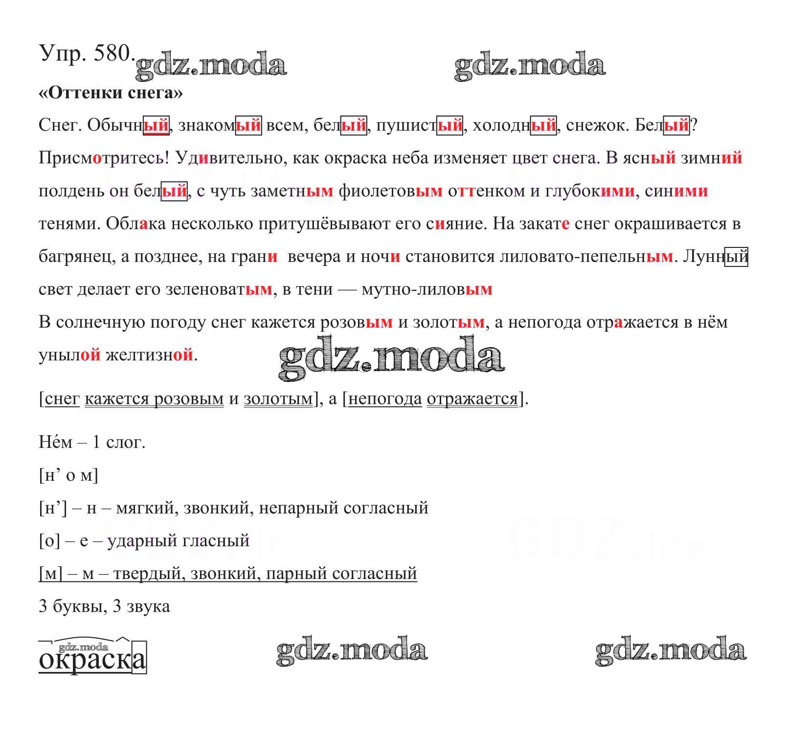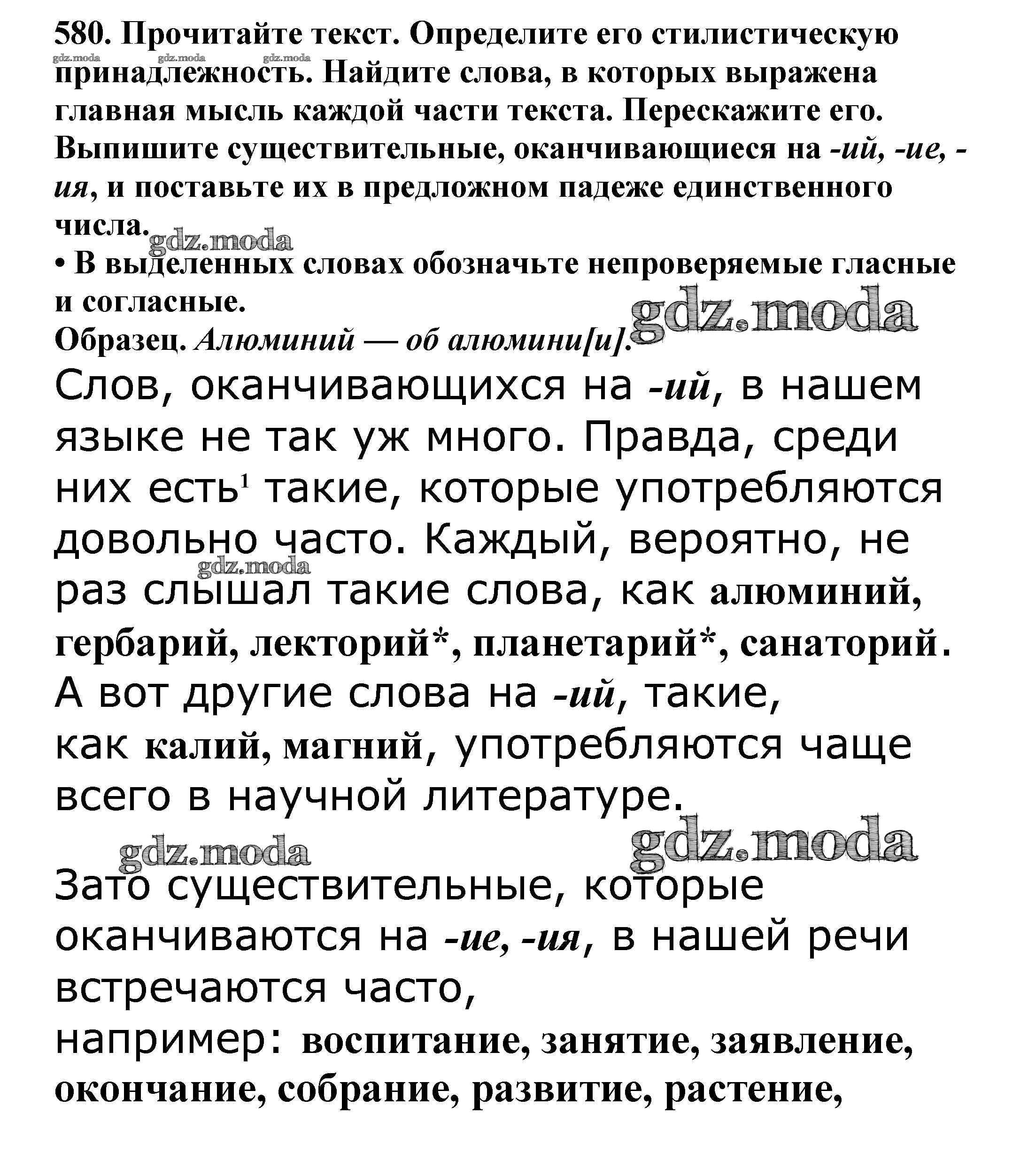 ОТВЕТ на задание № 580 Учебник по Русскому языку 5 класс Баранов
