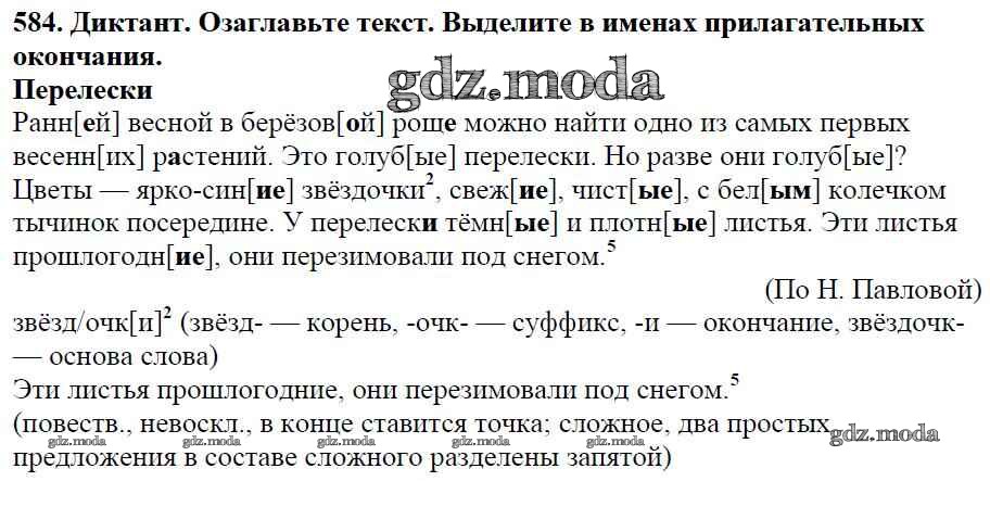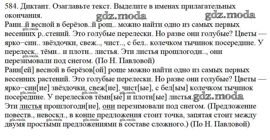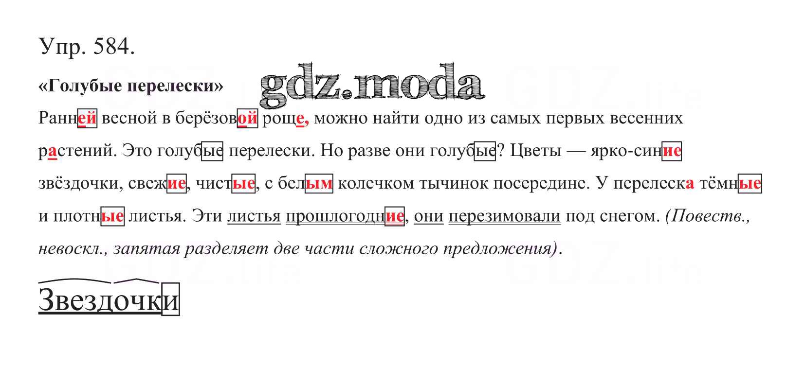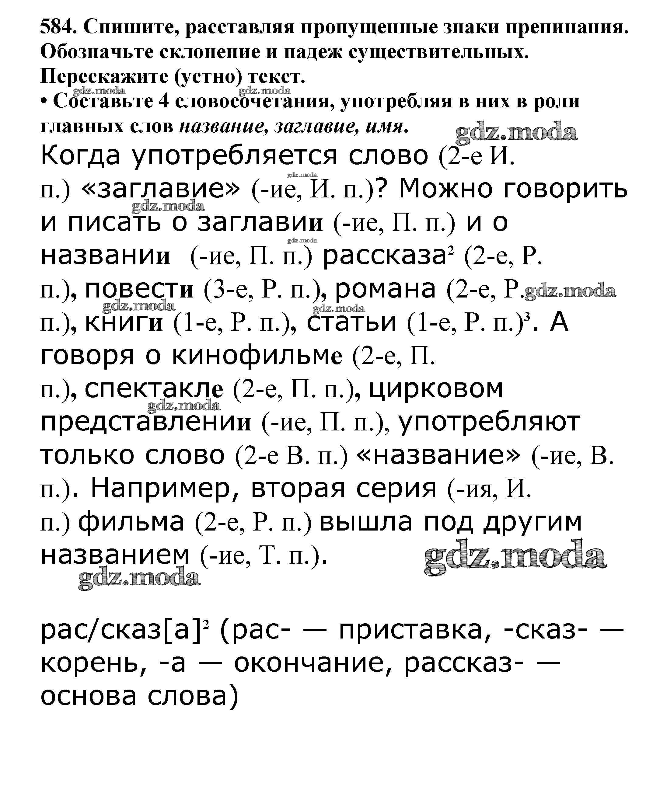 ОТВЕТ на задание № 584 Учебник по Русскому языку 5 класс Баранов