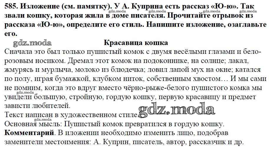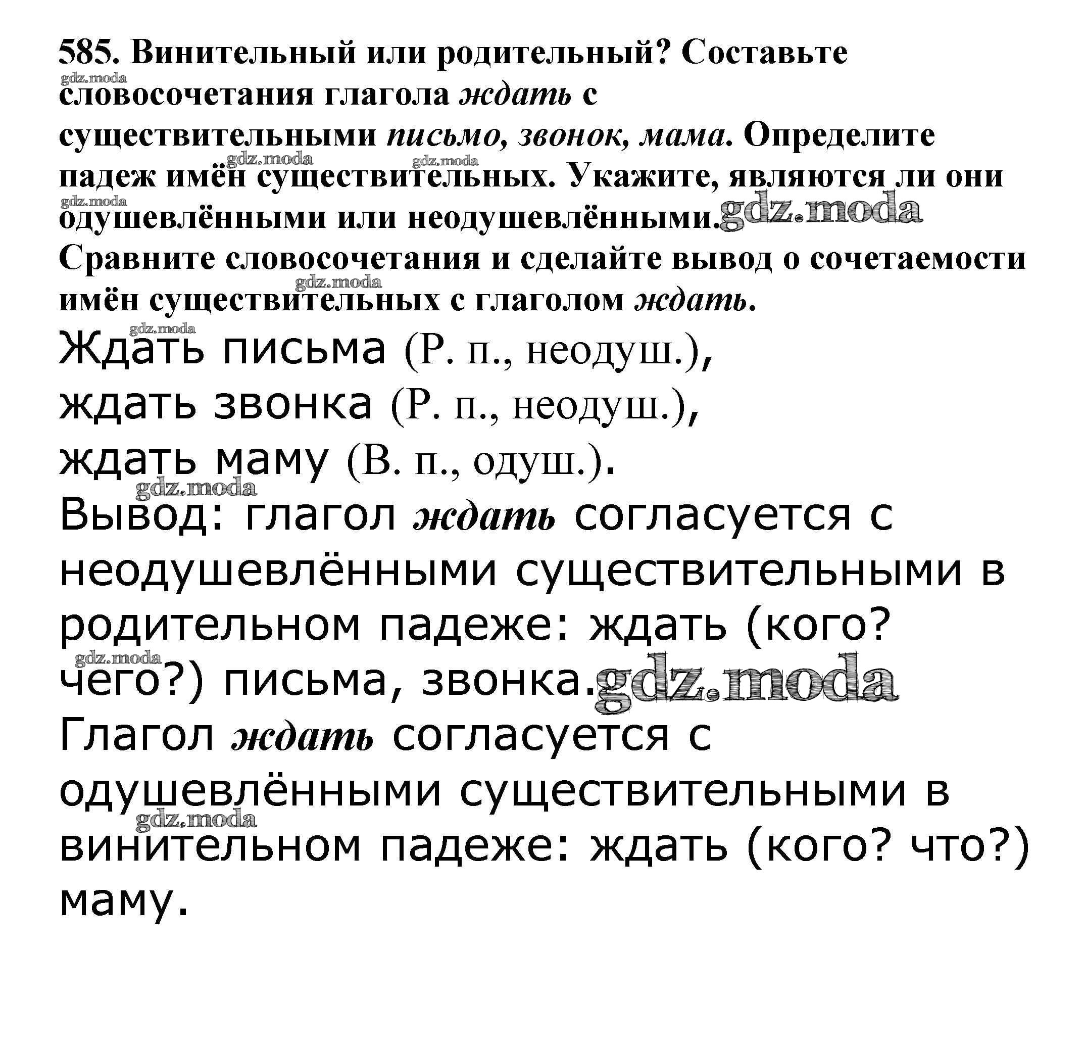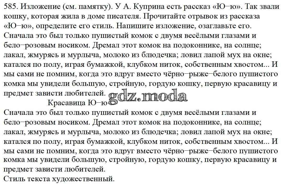 ОТВЕТ на задание № 585 Учебник по Русскому языку 5 класс Баранов