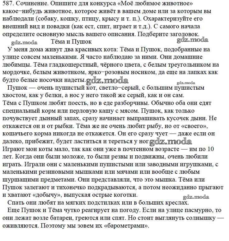 ОТВЕТ на задание № 587 Учебник по Русскому языку 5 класс Баранов