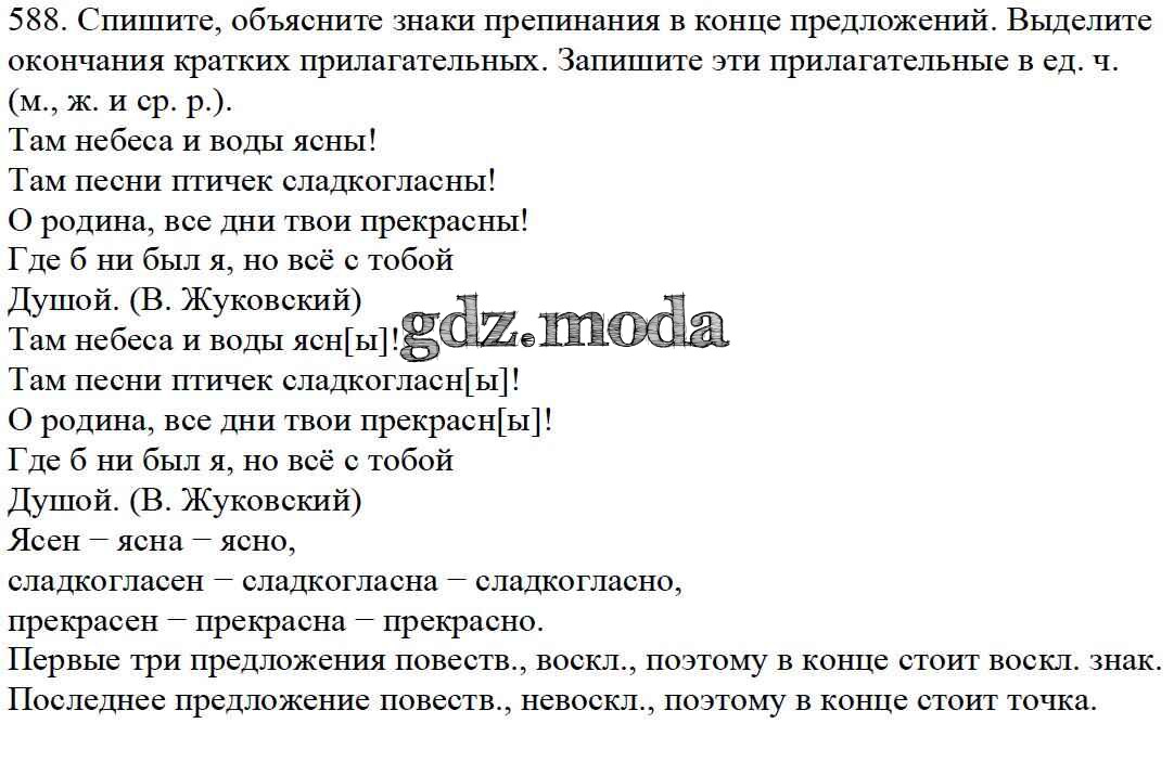 ОТВЕТ на задание № 588 Учебник по Русскому языку 5 класс Баранов