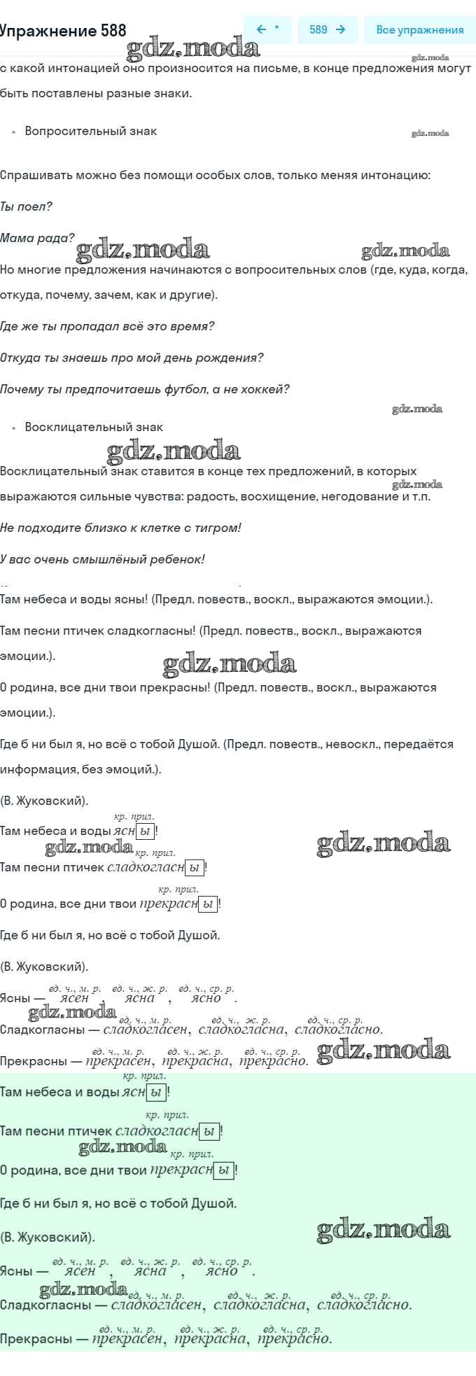 ГДЗ решение к заданию № 588 Русский язык 5 класс Ладыженская Т.А. Просвещение, Просвещение 2016, 2019 Часть 1, Часть 2 ФГОС бесплатно на гдз.мода!