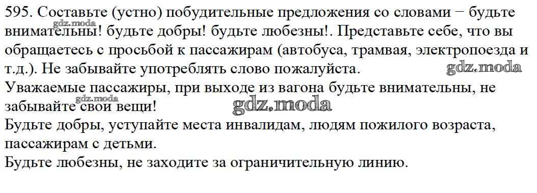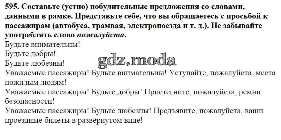 ОТВЕТ на задание № 595 Учебник по Русскому языку 5 класс Баранов