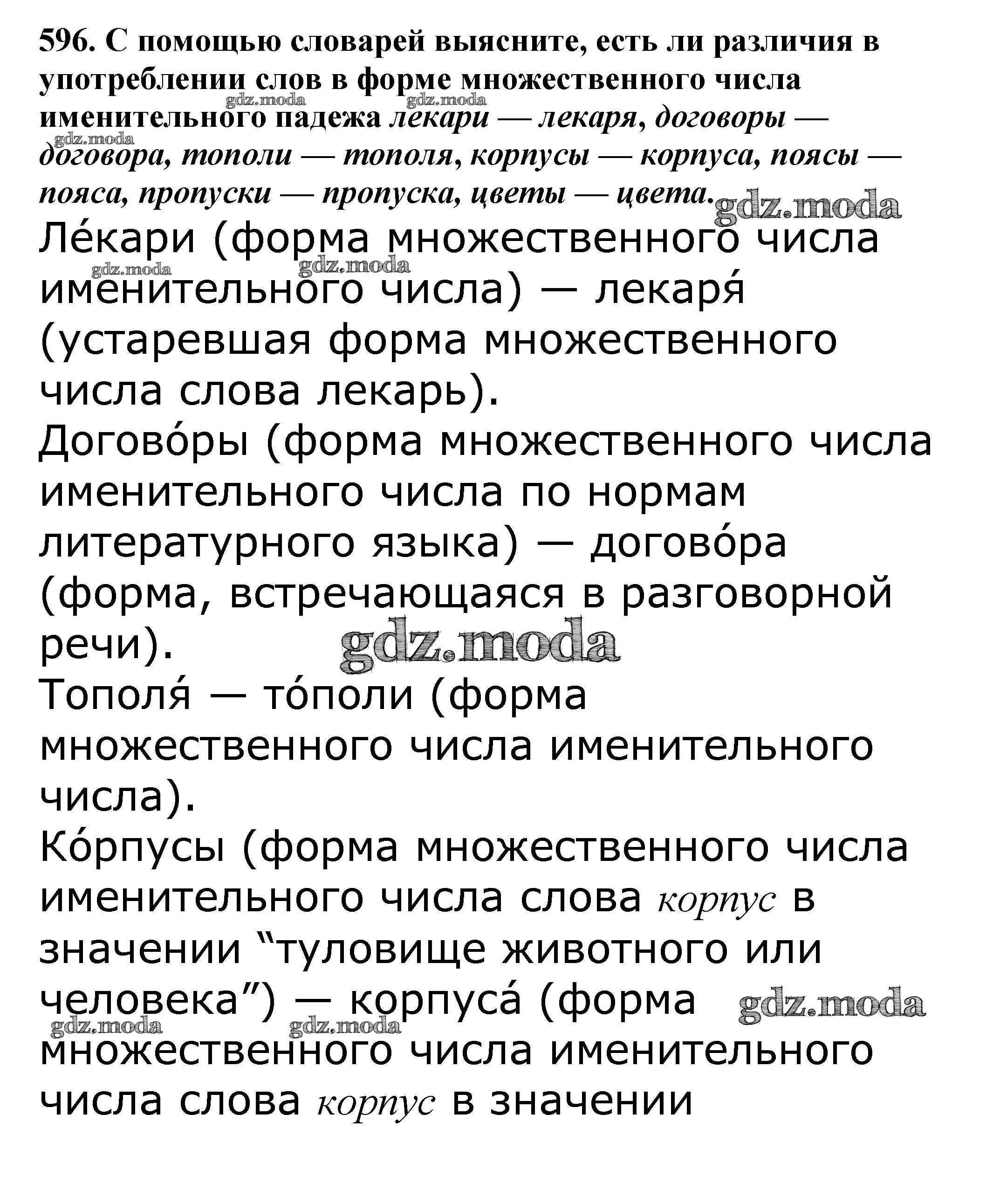 ОТВЕТ на задание № 596 Учебник по Русскому языку 5 класс Баранов