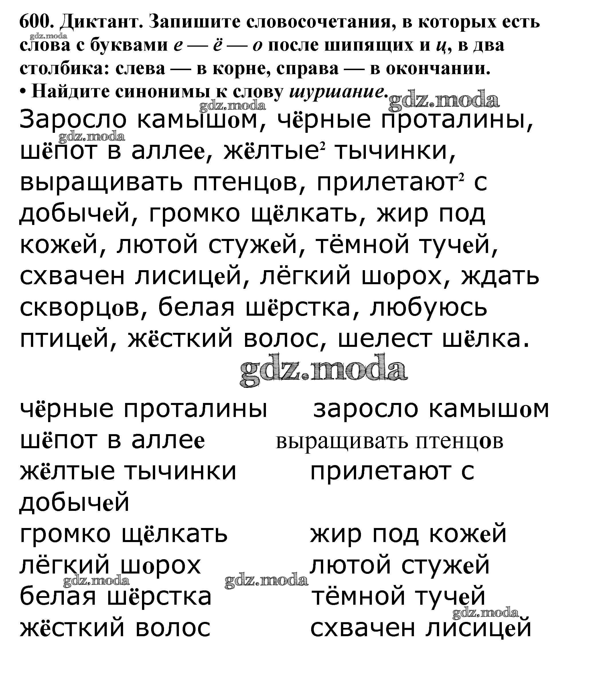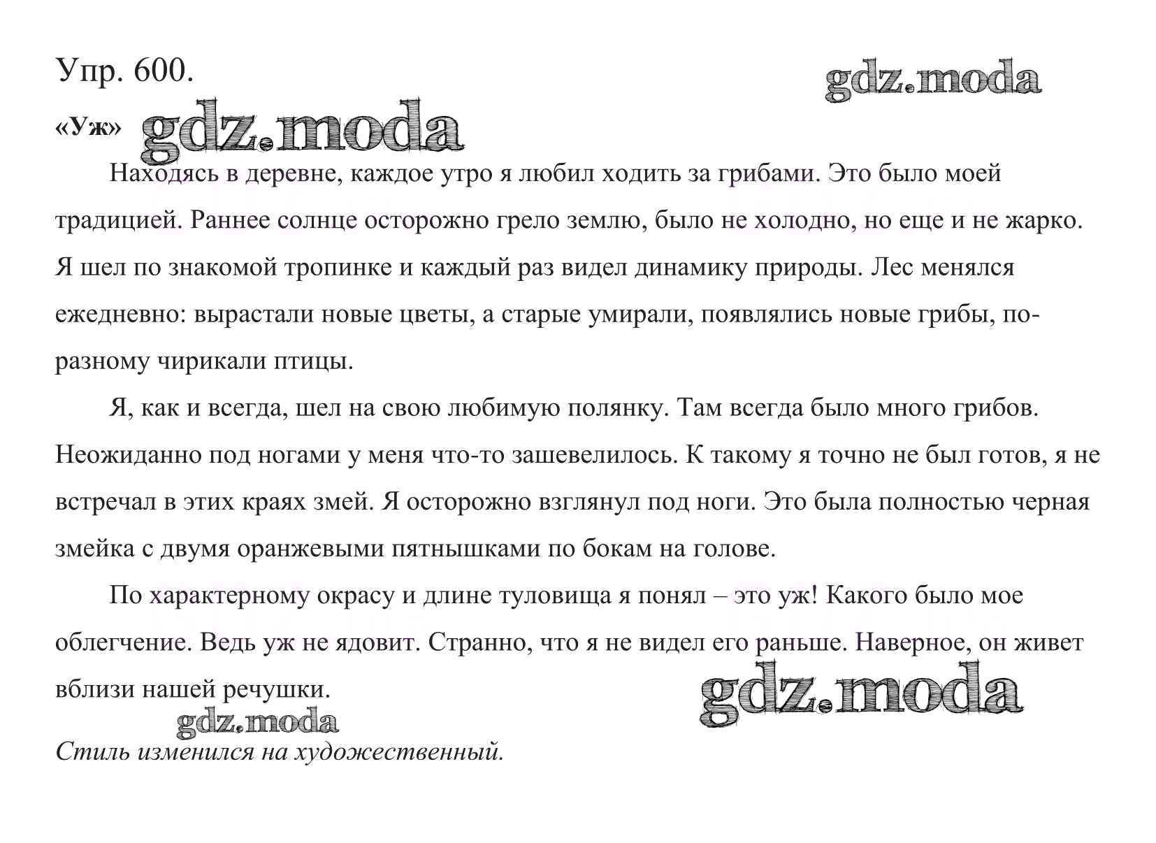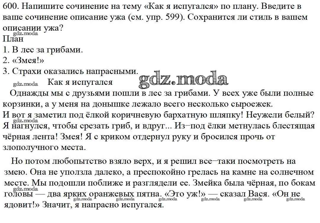 ОТВЕТ на задание № 600 Учебник по Русскому языку 5 класс Баранов