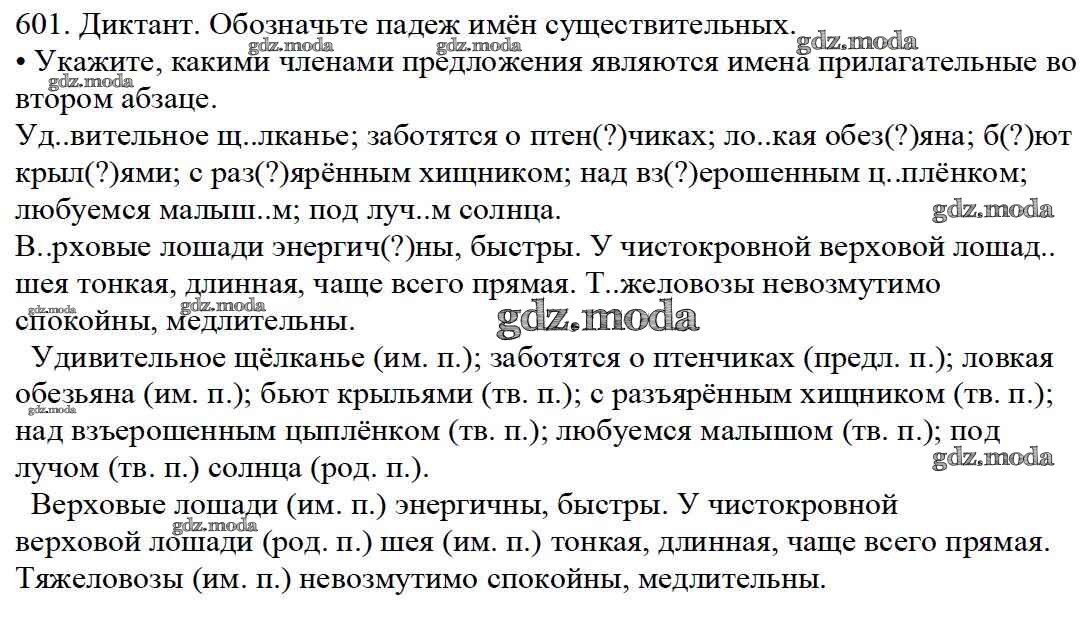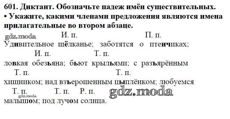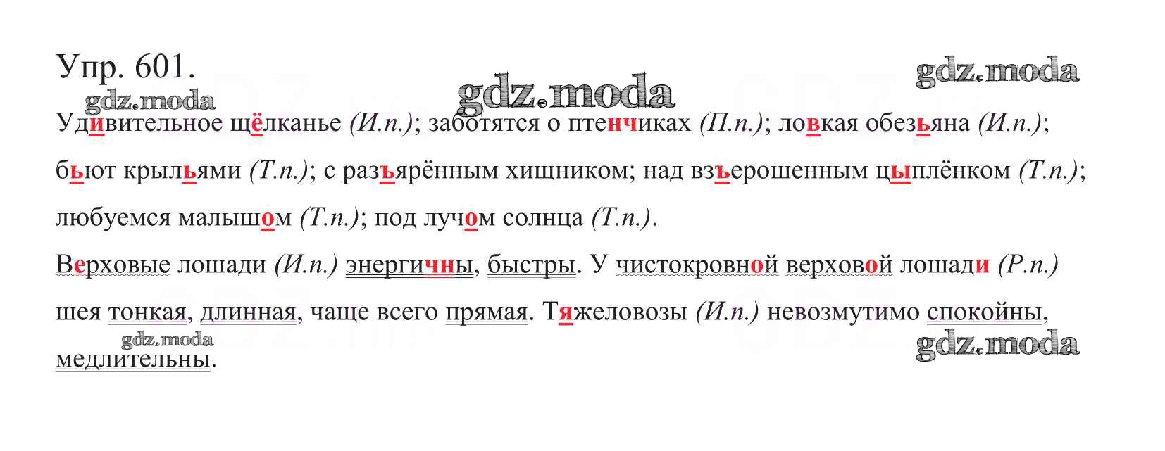 ОТВЕТ на задание № 601 Учебник по Русскому языку 5 класс Баранов