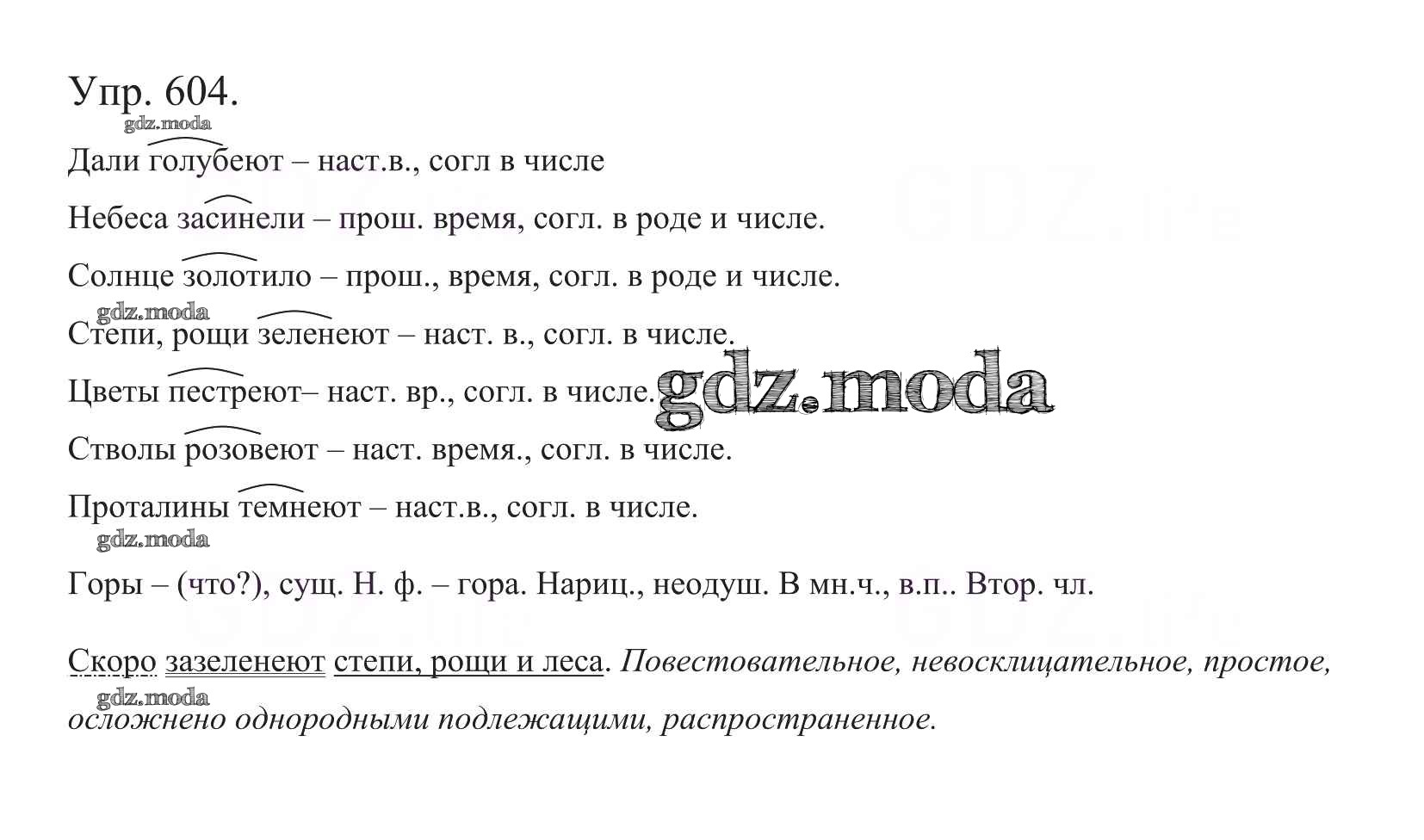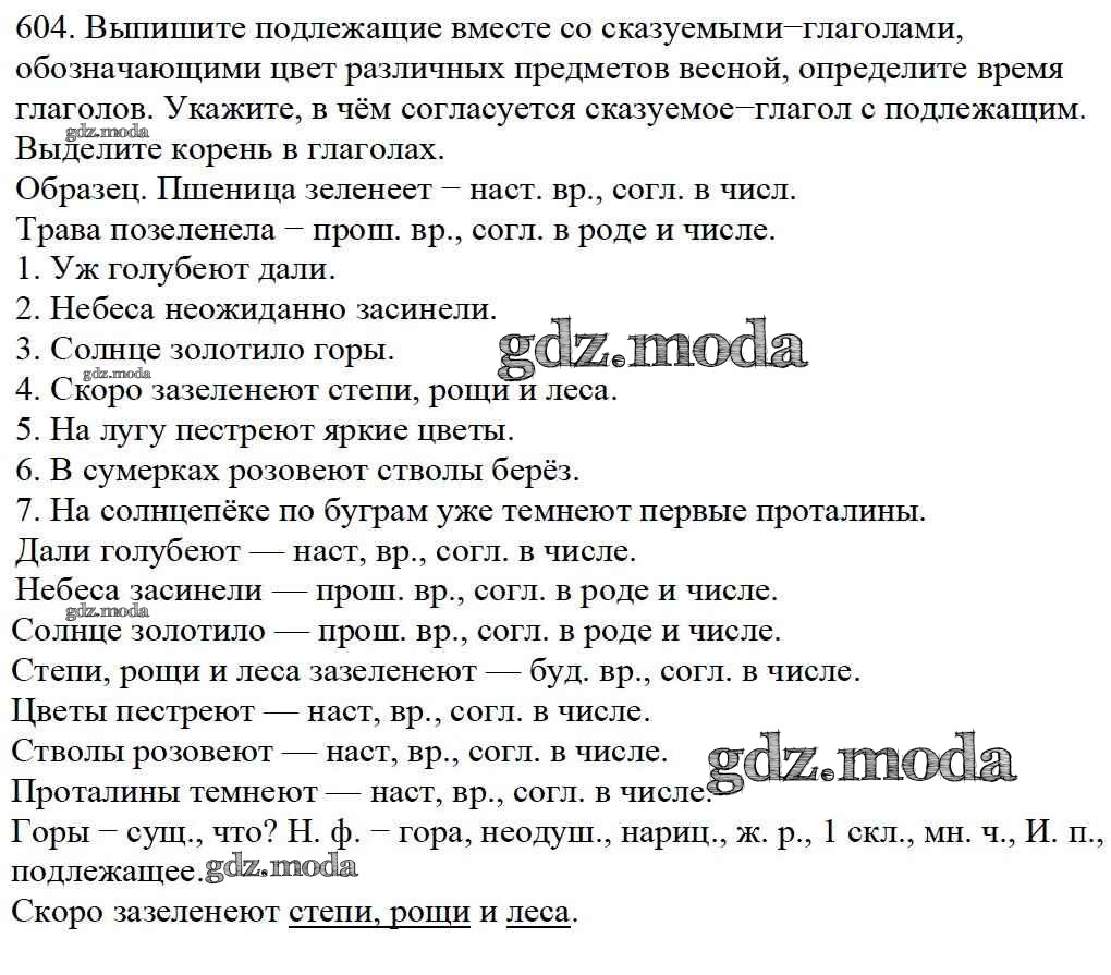 ОТВЕТ на задание № 604 Учебник по Русскому языку 5 класс Баранов