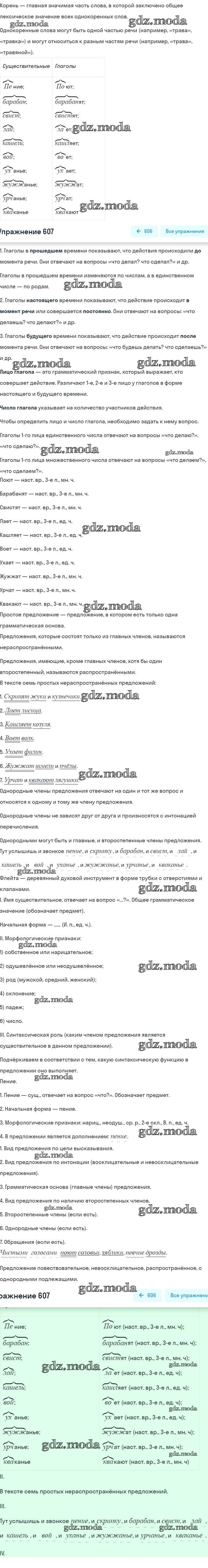 ОТВЕТ на задание № 607 Учебник по Русскому языку 5 класс Баранов