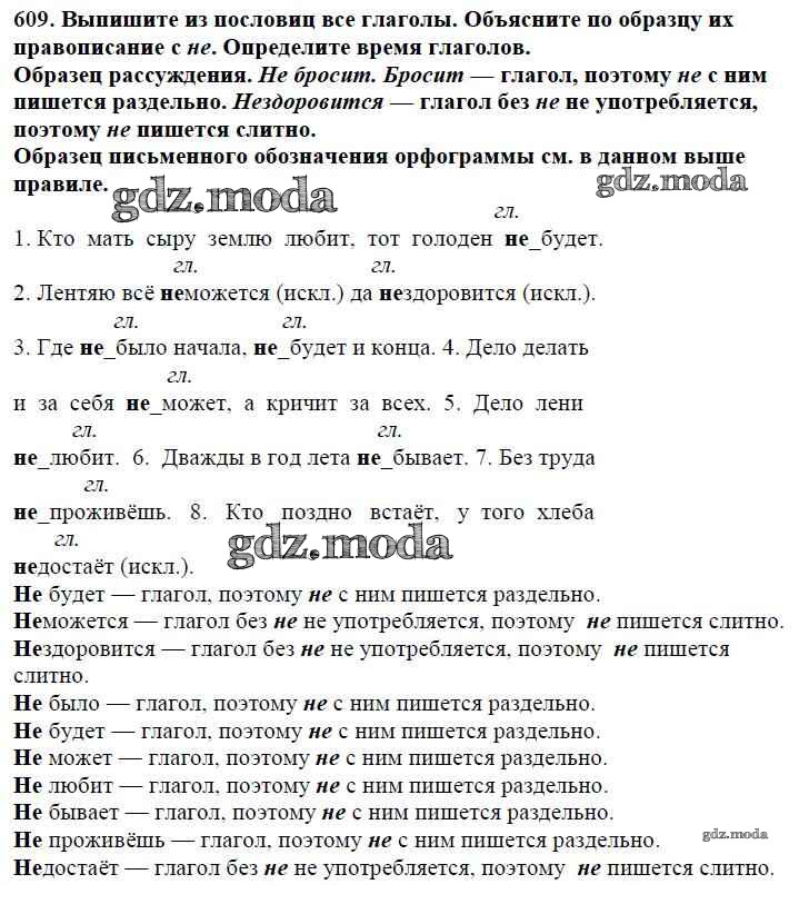 ОТВЕТ на задание № 609 Учебник по Русскому языку 5 класс Баранов