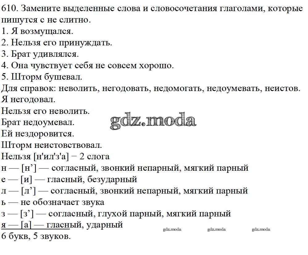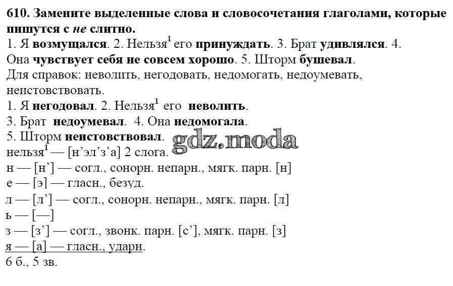 ОТВЕТ на задание № 610 Учебник по Русскому языку 5 класс Баранов
