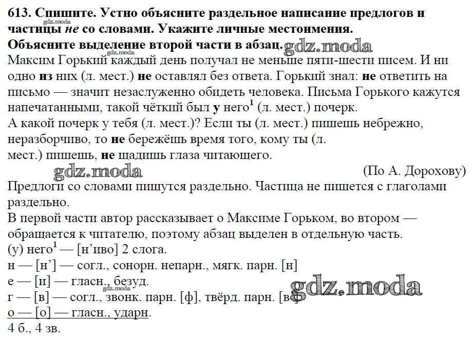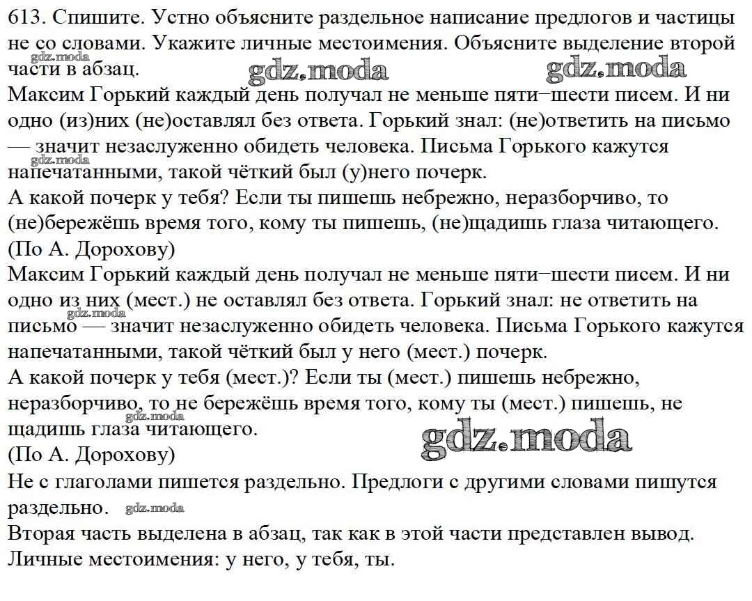 ОТВЕТ на задание № 613 Учебник по Русскому языку 5 класс Баранов