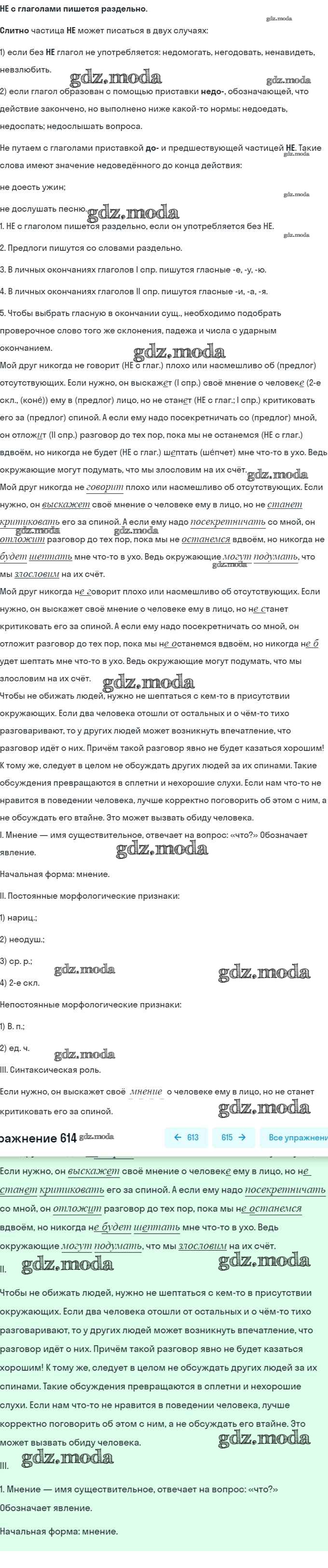 ОТВЕТ на задание № 614 Учебник по Русскому языку 5 класс Баранов