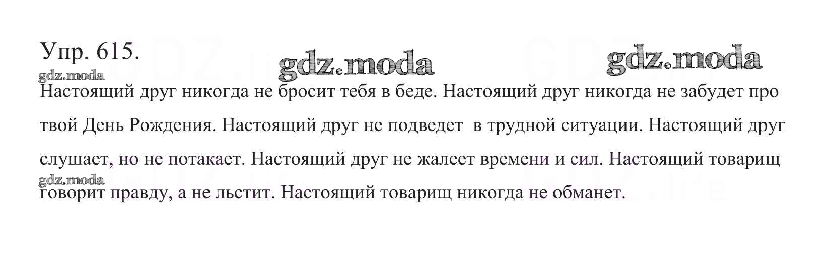 ОТВЕТ на задание № 615 Учебник по Русскому языку 5 класс Баранов