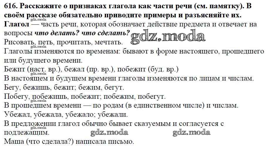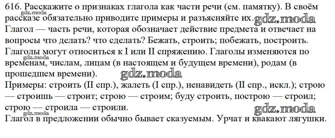 ОТВЕТ на задание № 616 Учебник по Русскому языку 5 класс Баранов