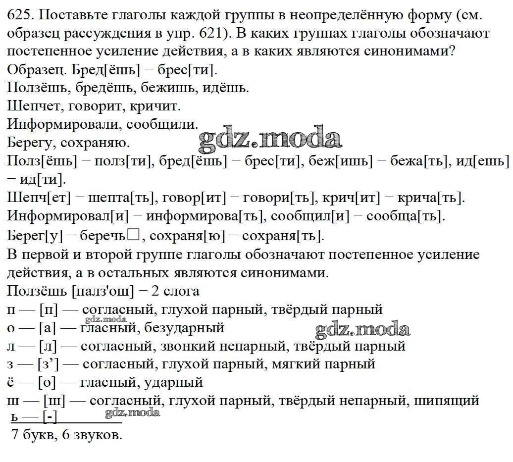 ОТВЕТ на задание № 625 Учебник по Русскому языку 5 класс Баранов