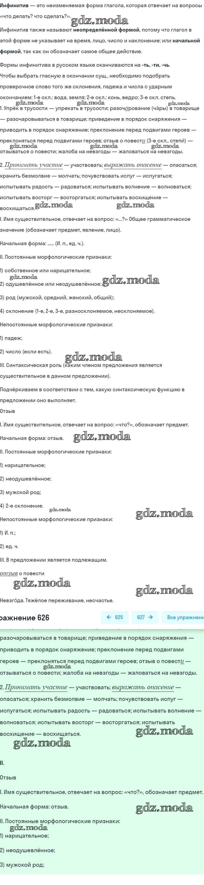 ОТВЕТ на задание № 626 Учебник по Русскому языку 5 класс Баранов