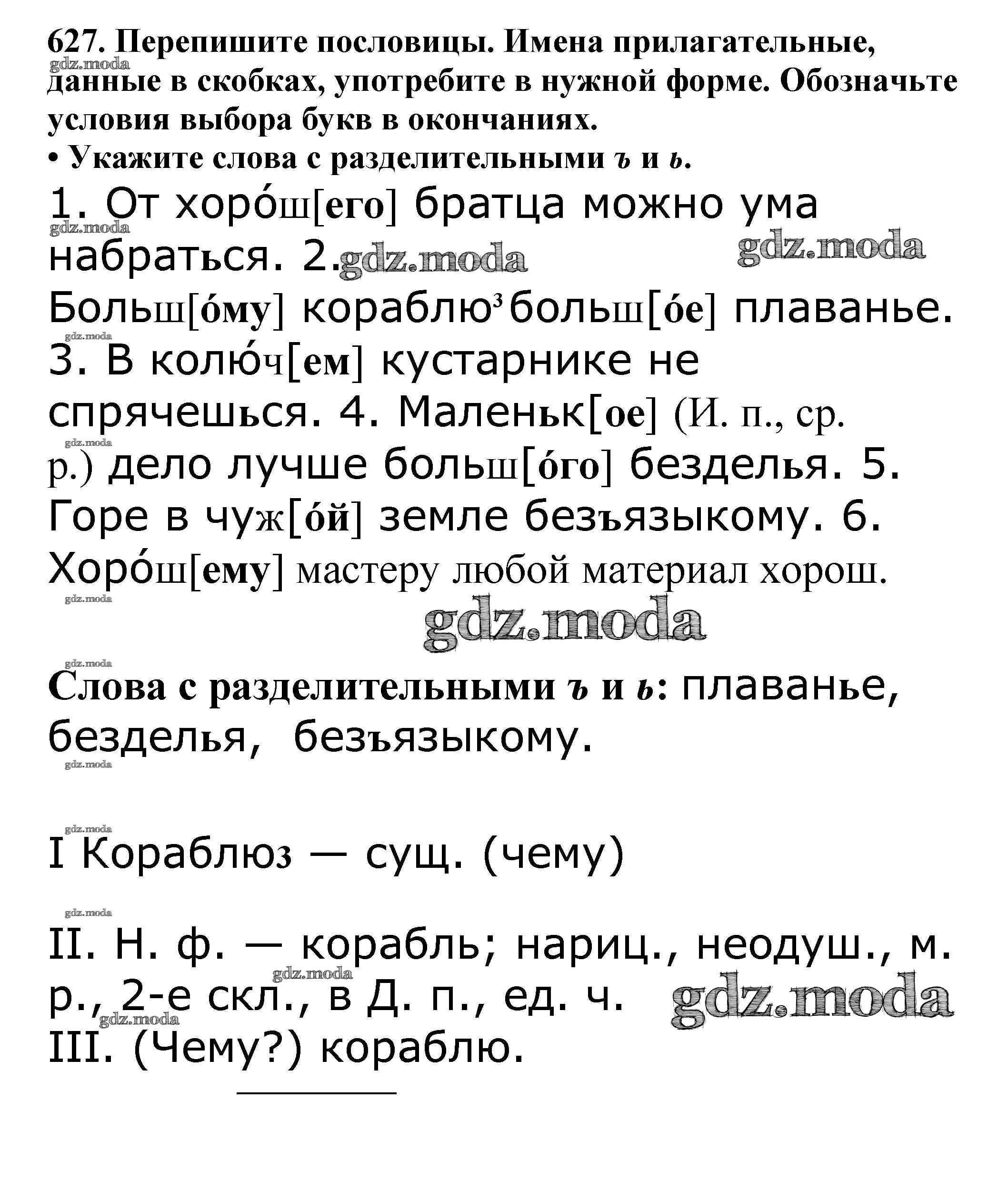 ОТВЕТ на задание № 627 Учебник по Русскому языку 5 класс Баранов