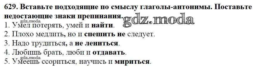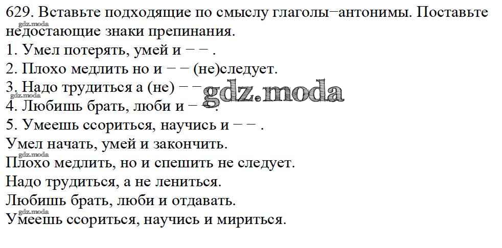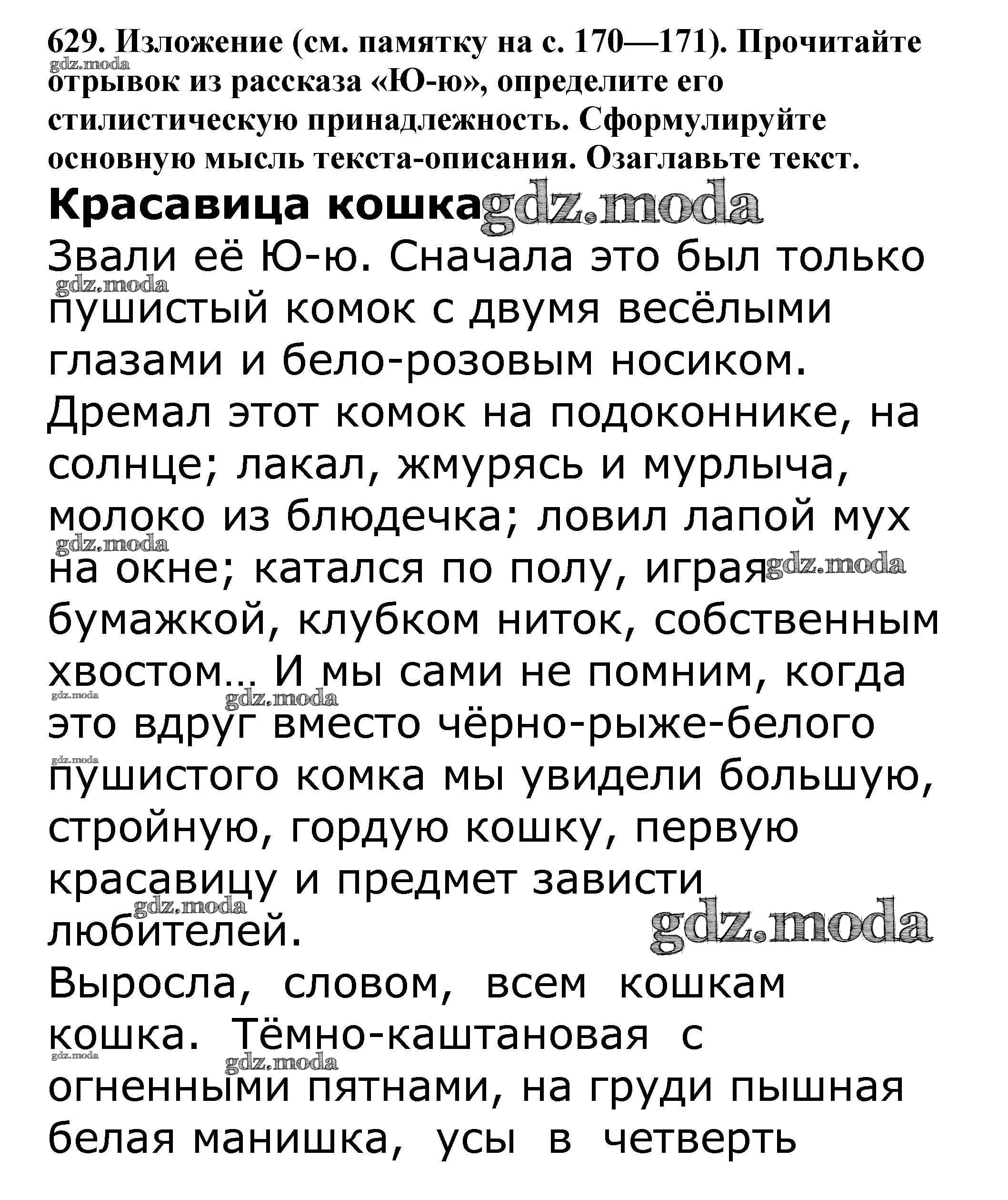 ОТВЕТ на задание № 629 Учебник по Русскому языку 5 класс Баранов