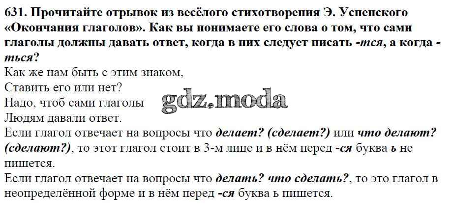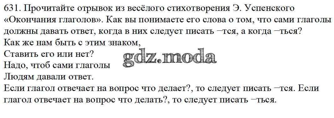 ОТВЕТ на задание № 631 Учебник по Русскому языку 5 класс Баранов