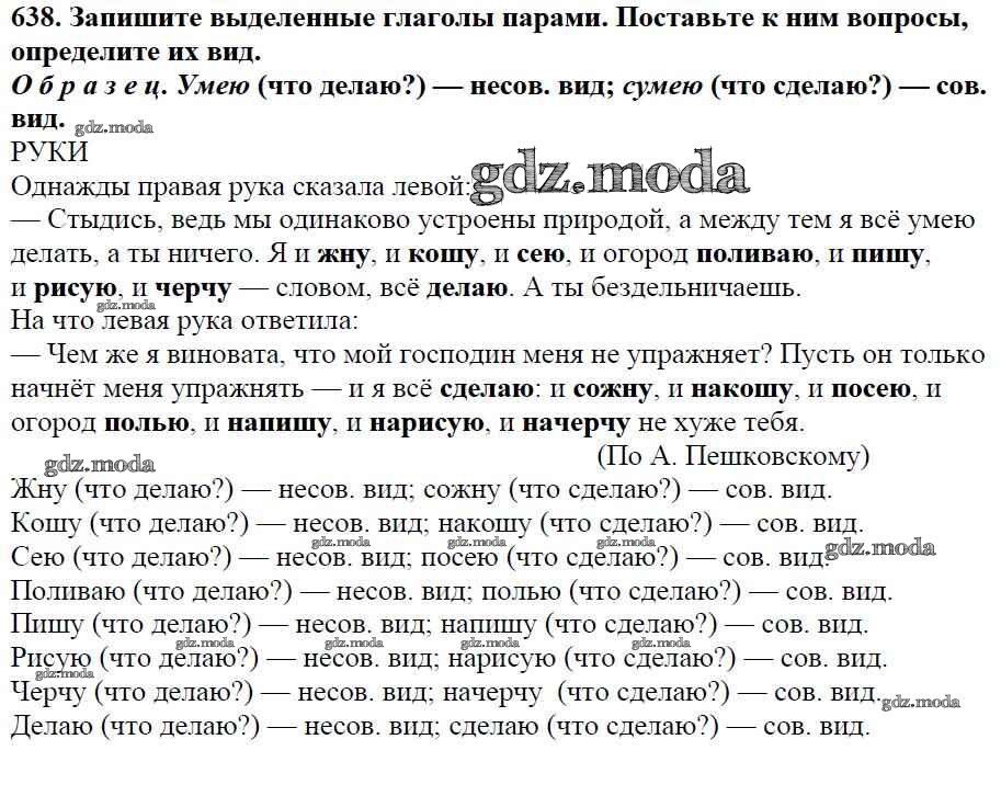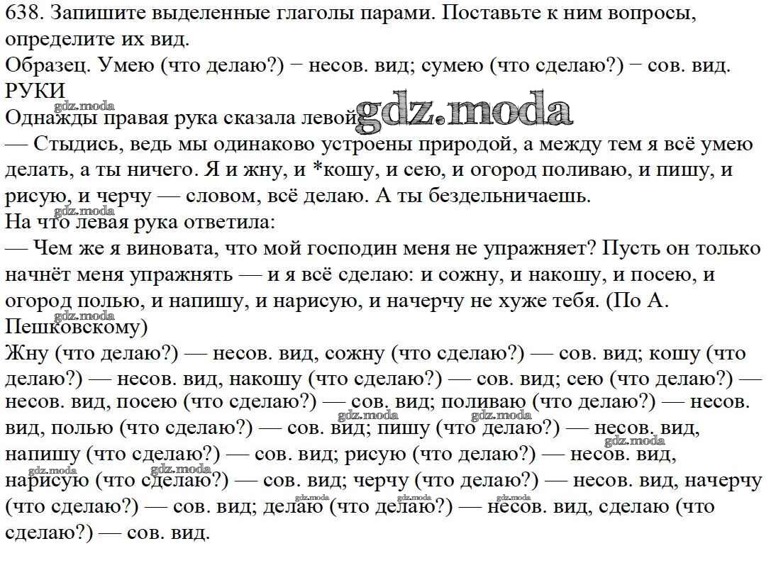 ОТВЕТ на задание № 638 Учебник по Русскому языку 5 класс Баранов