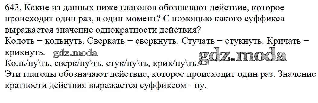 ОТВЕТ на задание № 643 Учебник по Русскому языку 5 класс Баранов