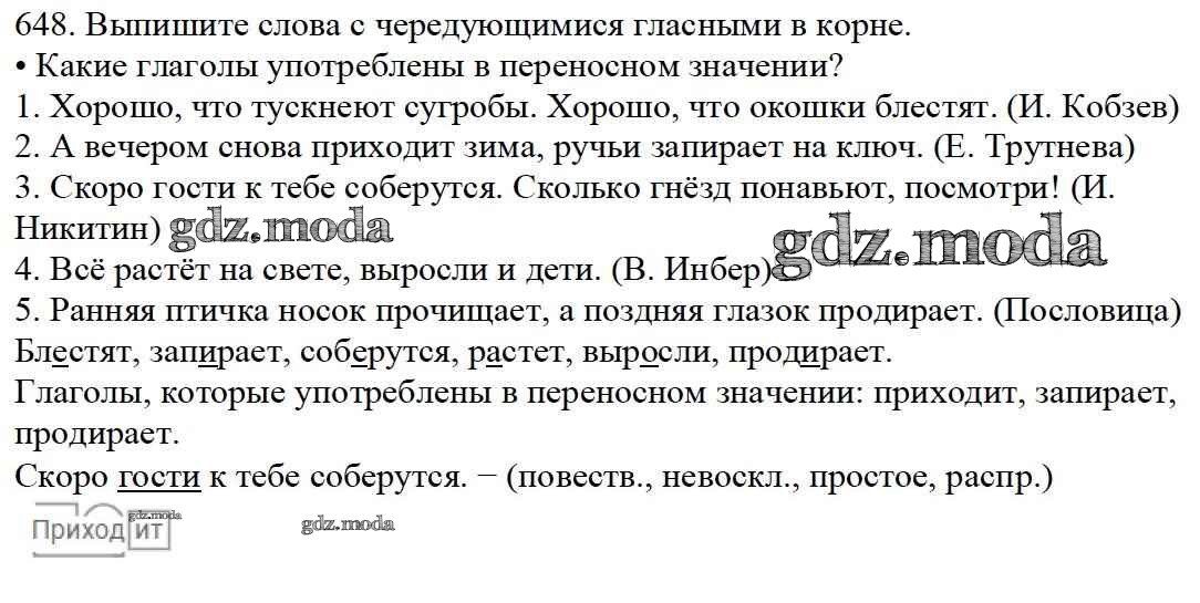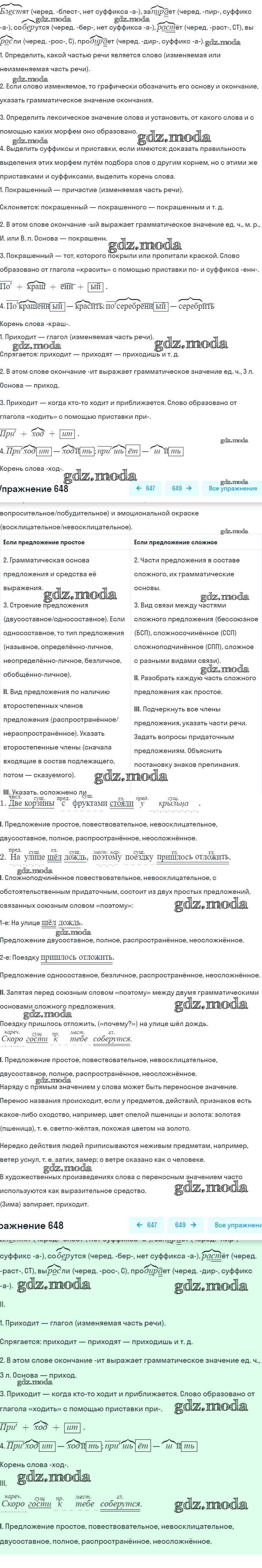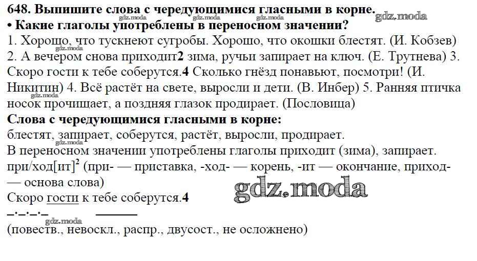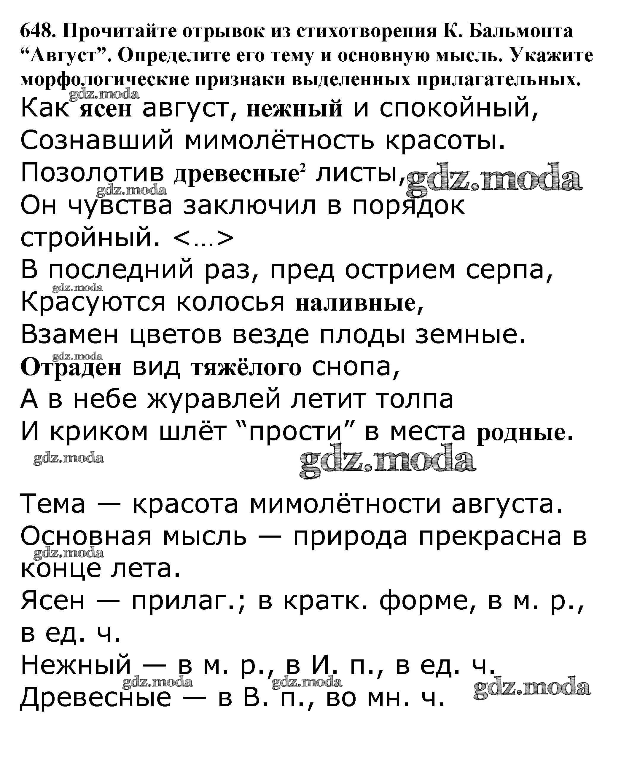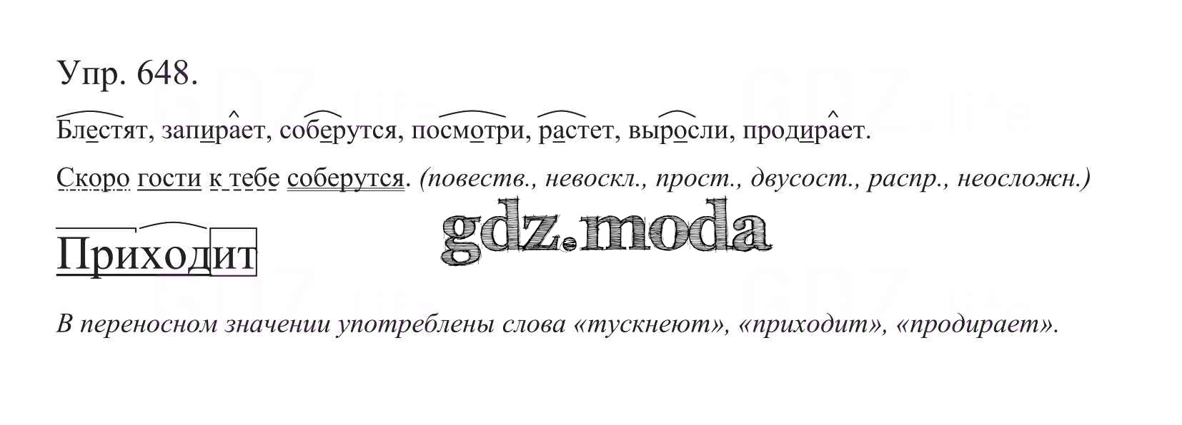 ОТВЕТ на задание № 648 Учебник по Русскому языку 5 класс Баранов