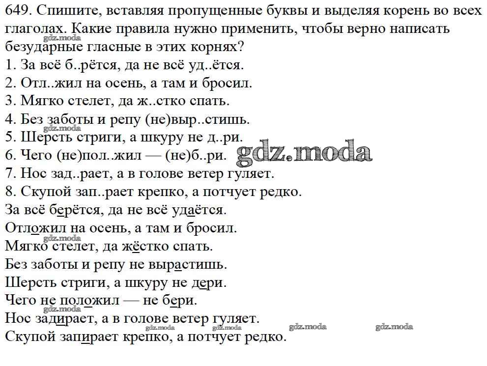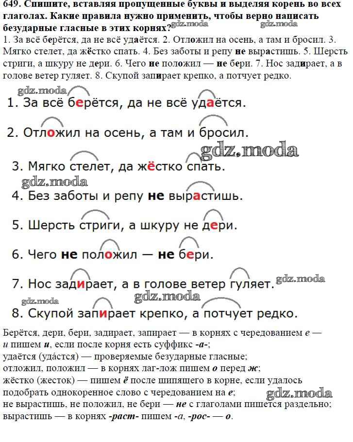 ОТВЕТ на задание № 649 Учебник по Русскому языку 5 класс Баранов