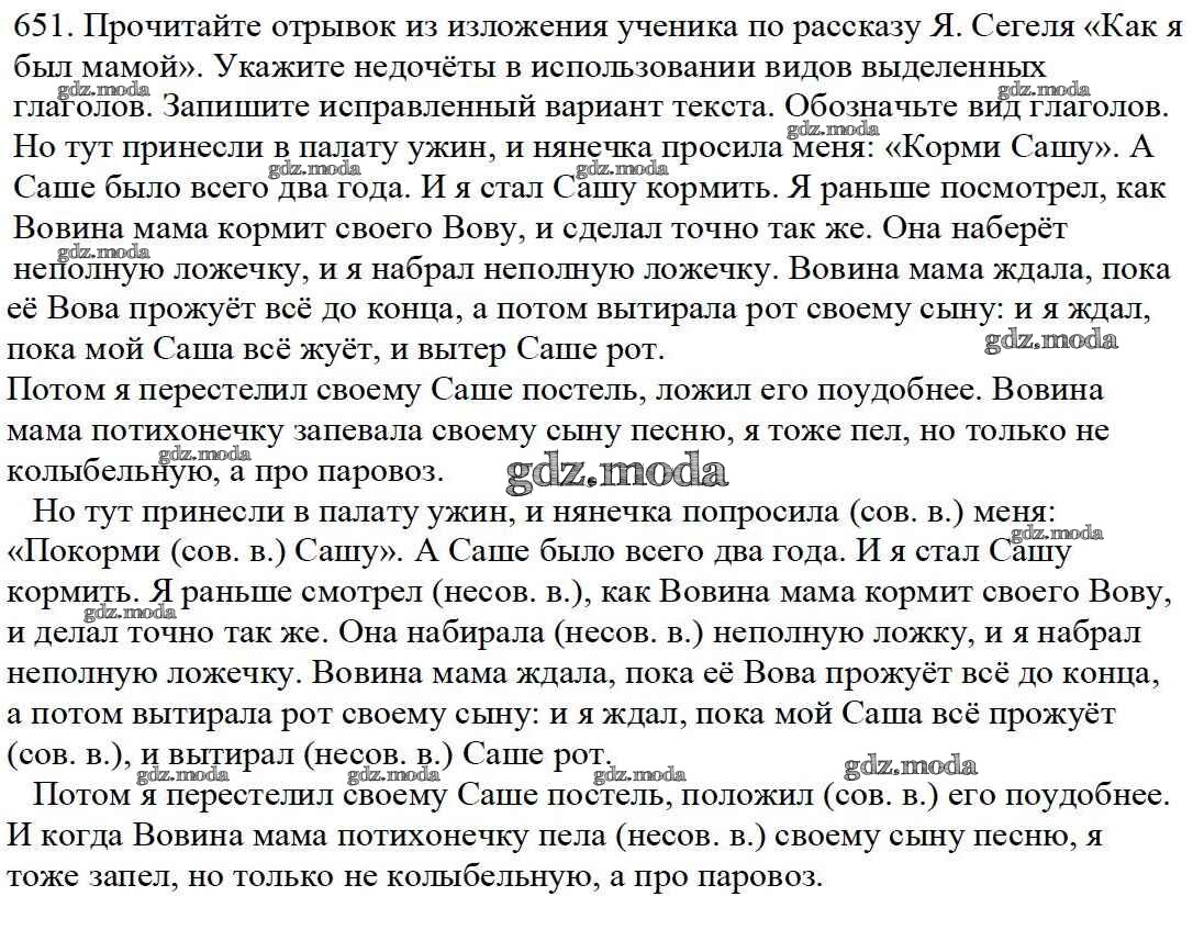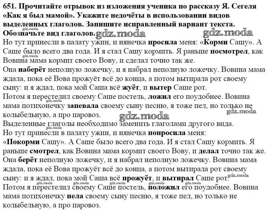 ОТВЕТ на задание № 651 Учебник по Русскому языку 5 класс Баранов